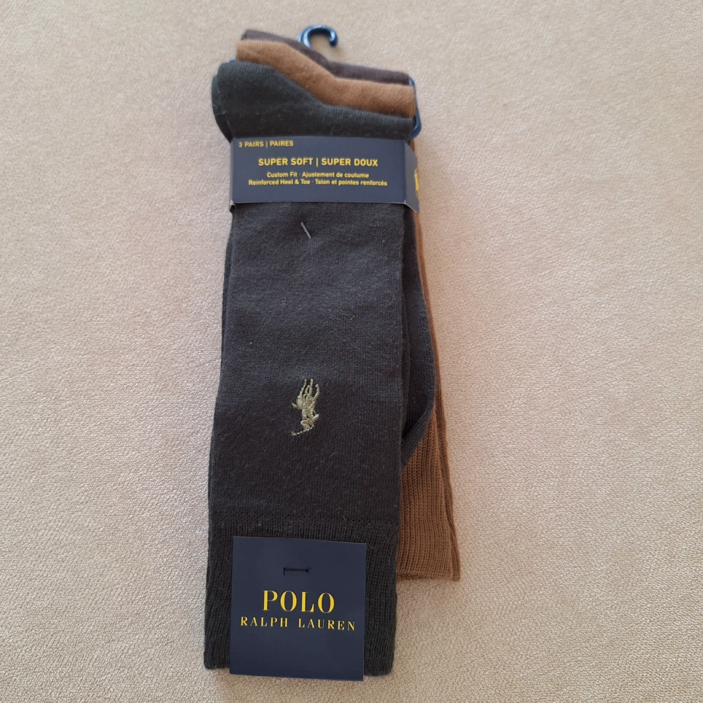 These are 3 pairs of Polo Ralph Lauren socks. They're super soft with a custom fit. Reinforced heel and toe for durability.