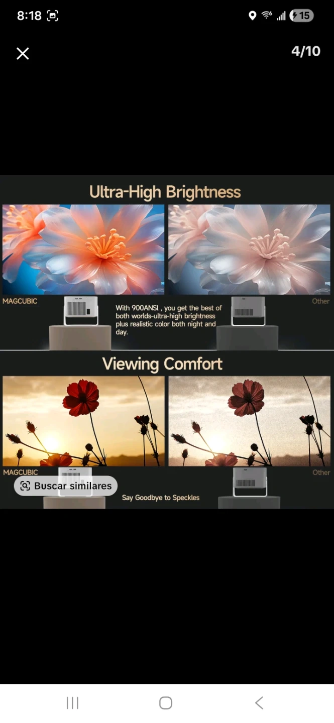 Alta luminosidad: La luminosidad de 900 lúmenes ANSI garantiza imágenes vibrantes incluso en habitaciones bien iluminadas.: Equipado con Android14, wiFi 6 y Biuetootn 5.4 para una transmisión sin interrupciones e integración de dispositivos