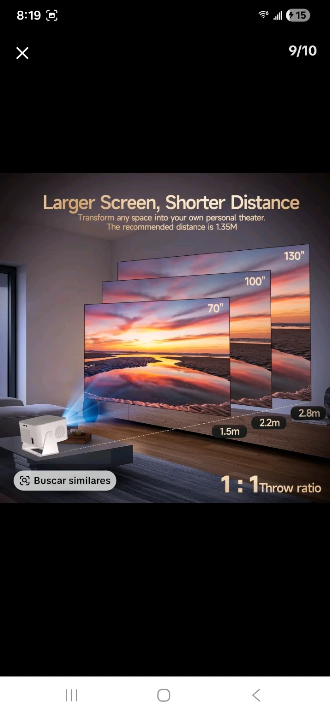 Diseño compacto: La corta relación de tiro 1.0:1 permite proyectar una pantalla grande desde una distancia cercana, ideal para habitaciones pequeñas