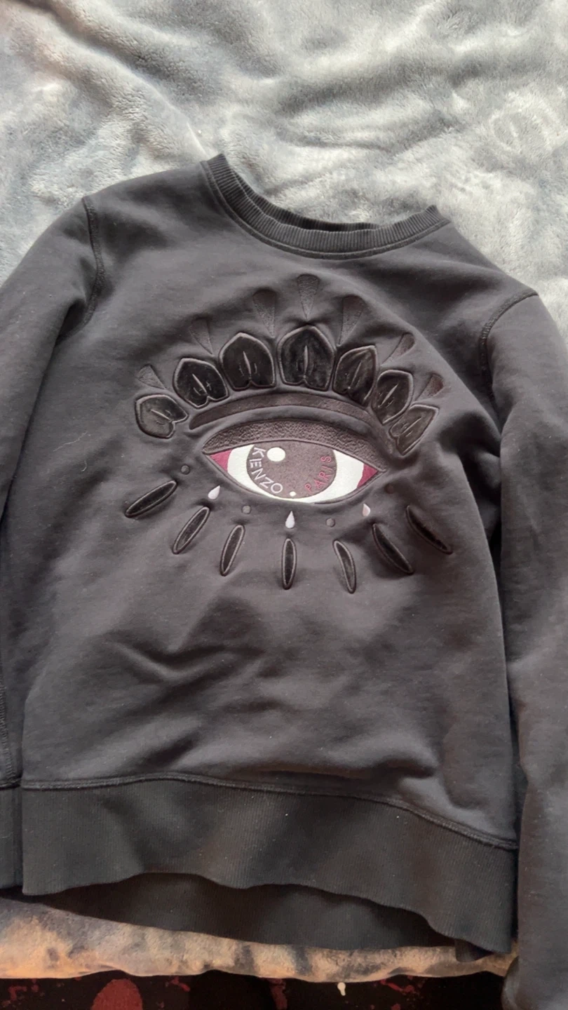This Kenzo Paris sweatshirt features a black embroidered eye design. It's made from a comfortable material suitable for casual wear. This pullover style is a classic addition to any wardrobe.