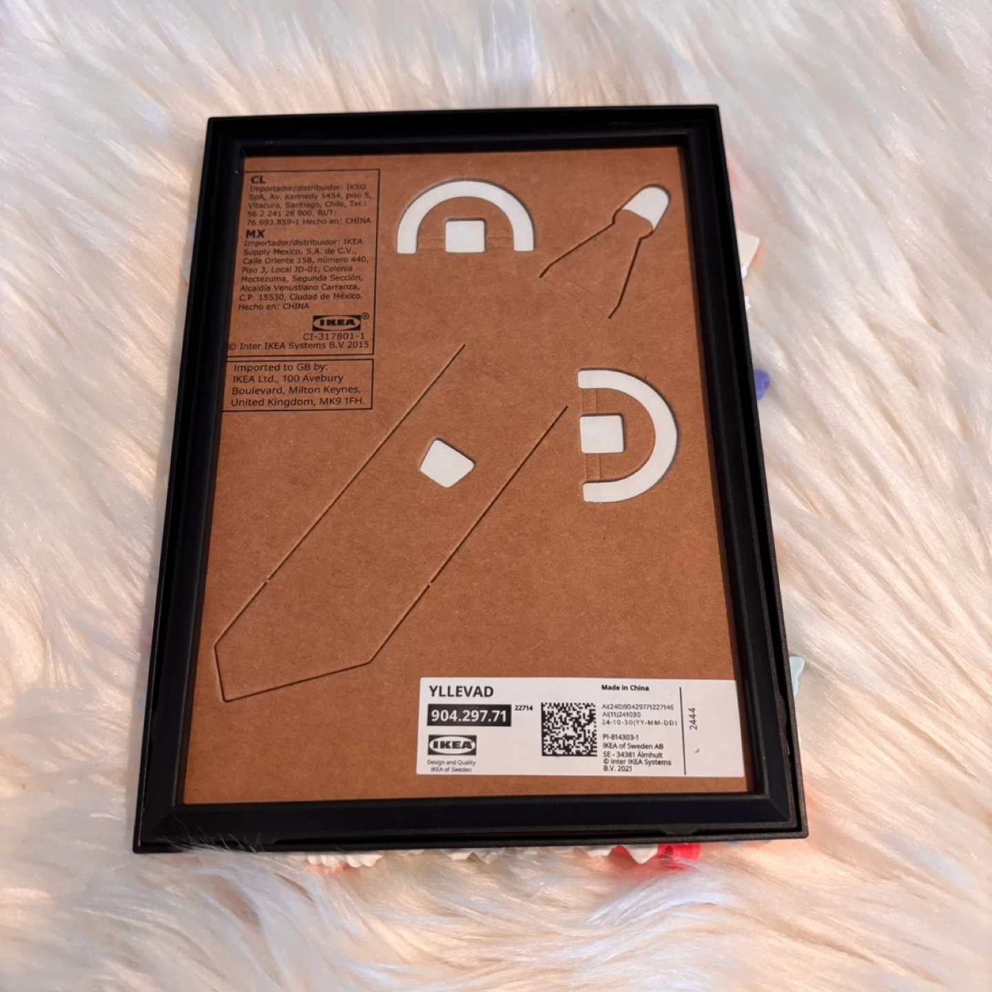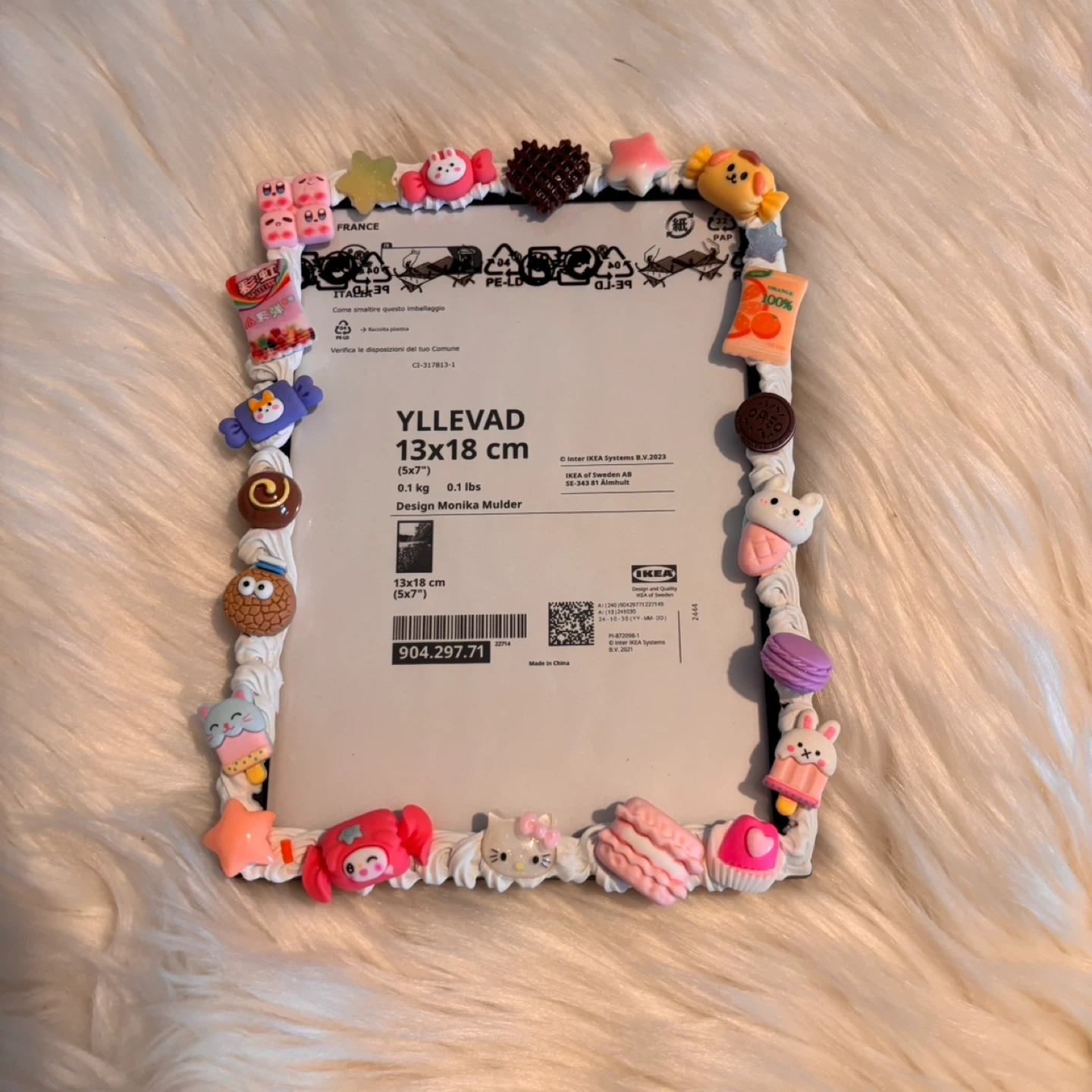 This IKEA YLLEVAD photo frame fits a 13x18 cm (5x7”) picture. It's decorated with various cute charms.