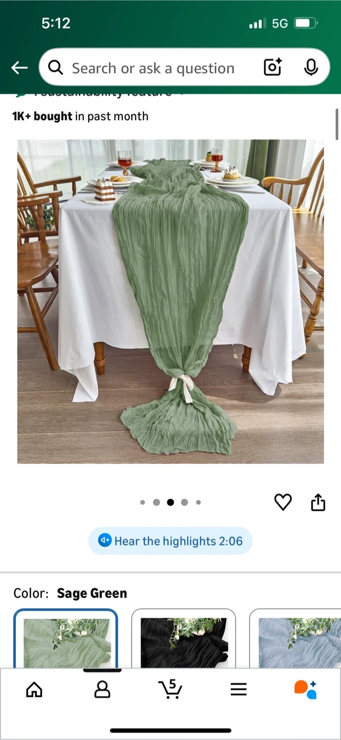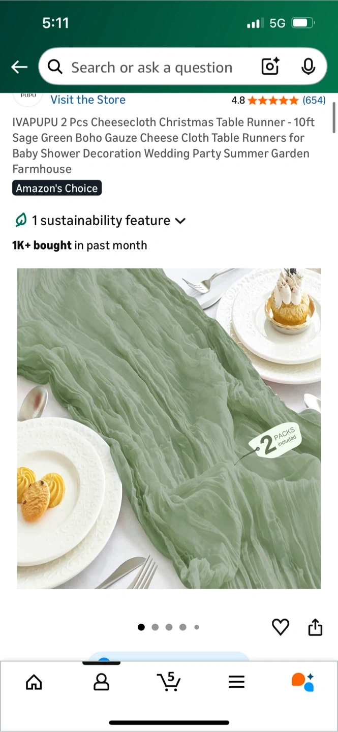 73Selling a set of two IVAPUPU cheesecloth table runners in a beautiful sage green color! Perfect for adding a touch of boho elegance to your table setting. These runners are 10ft long, ideal for baby showers, wedding parties, or just a summer garden gathering