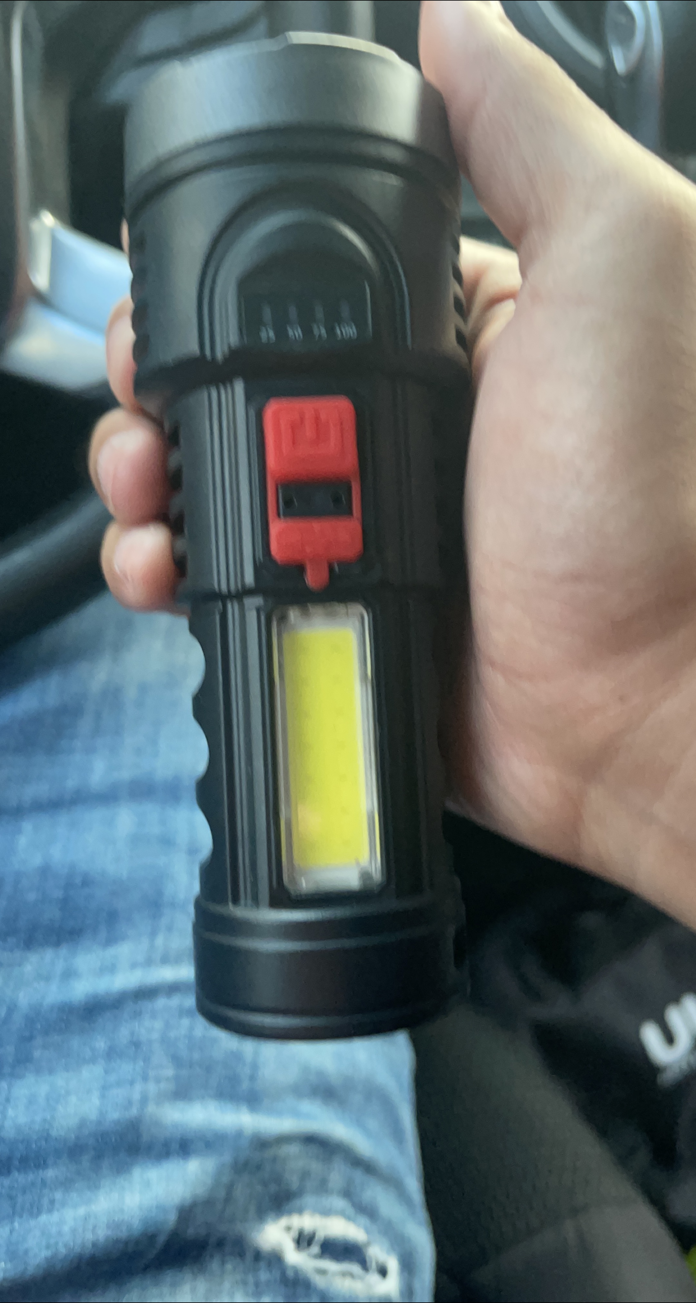 Selling a tactical LED flashlight in great condition. It's black and has a red button. Perfect for outdoor activities or emergency situations!