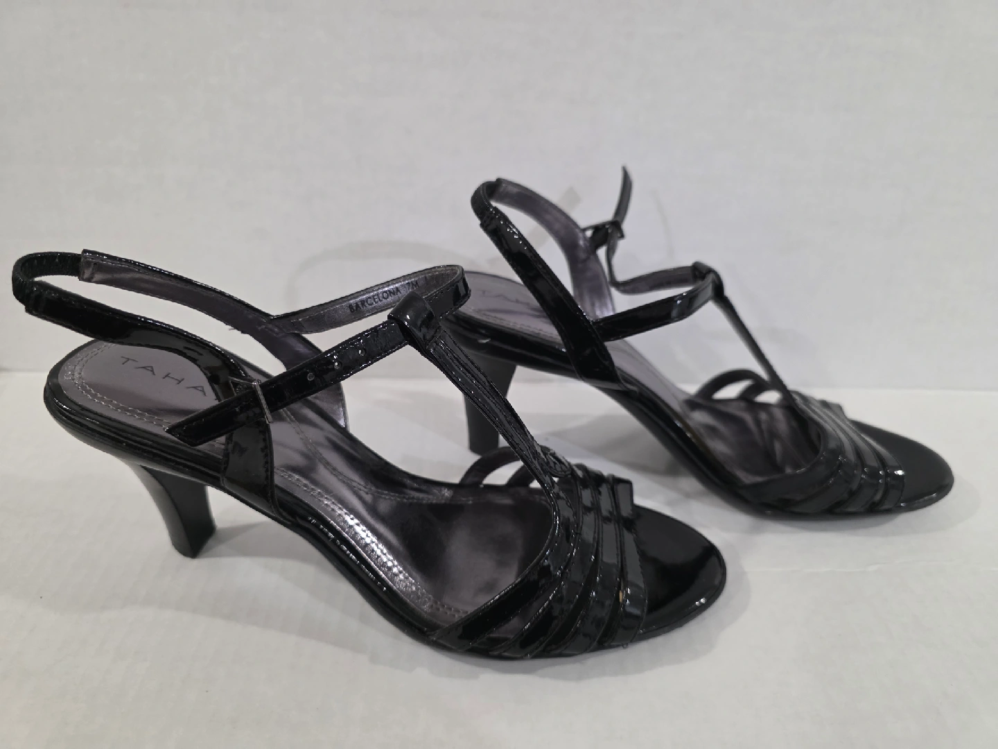 Selling a pair of Taha Barcelona heels in black! They are size 7M and have a sleek, shiny look. These heels are perfect for a night out or a special occasion. No box.