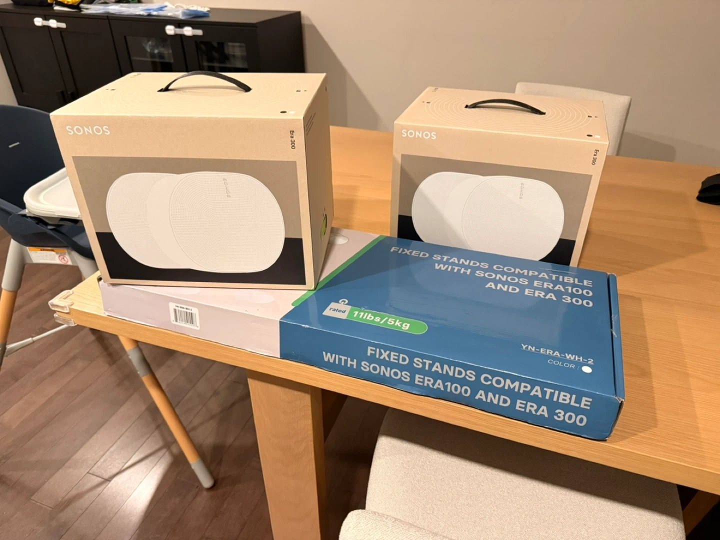 Two new Sonos Era 300 speakers are available. Also included are fixed stands compatible with Sonos Era 100 and Era 300 speakers. The stands are rated for 11lbs/5kg and are white in colour.