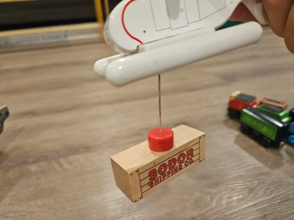 Harold the Helicopter Stephen from Thomas & Friends. He has a magnet grapple for picking up magnetic accessories (not included). You can raise and lower the grapple by spinning the rotor. Has play wear, but is in good condition.