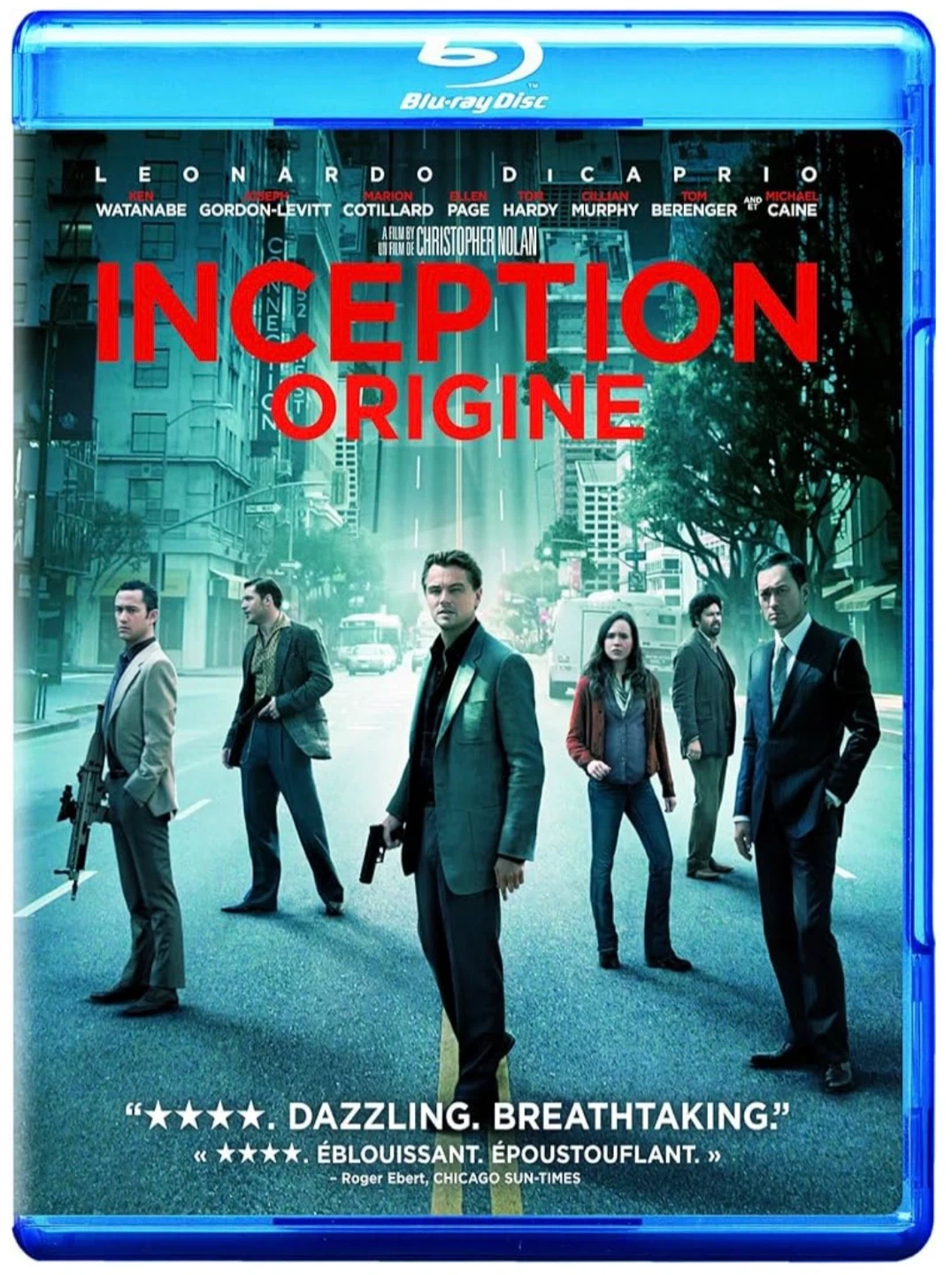 Selling a Blu-ray disc of Inception, featuring Leonardo DiCaprio and directed by Christopher Nolan! A dazzling and breathtaking movie!