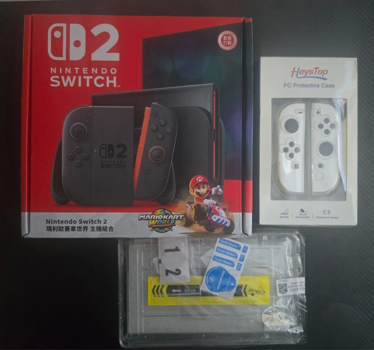 Nintendo Switch 2 Console + Mario Kart World Game Bundle.with screen protector , protection cover and US style power adapter .