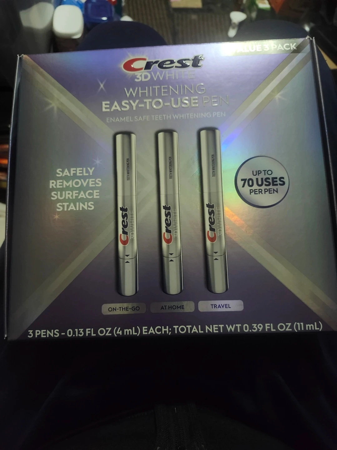 This is a value 3 pack of Crest 3D White Whitening Easy-to-Use Pens. Each pen contains 0.13 fl oz (4 mL) for a total net weight of 0.39 fl oz (11 mL). Each pen provides up to 70 uses.