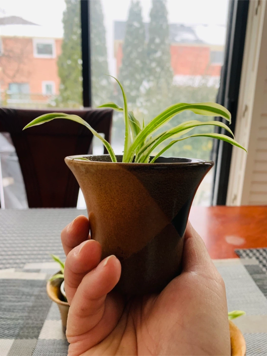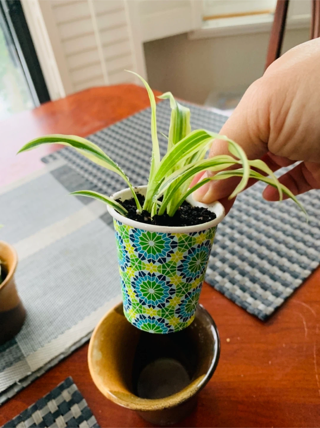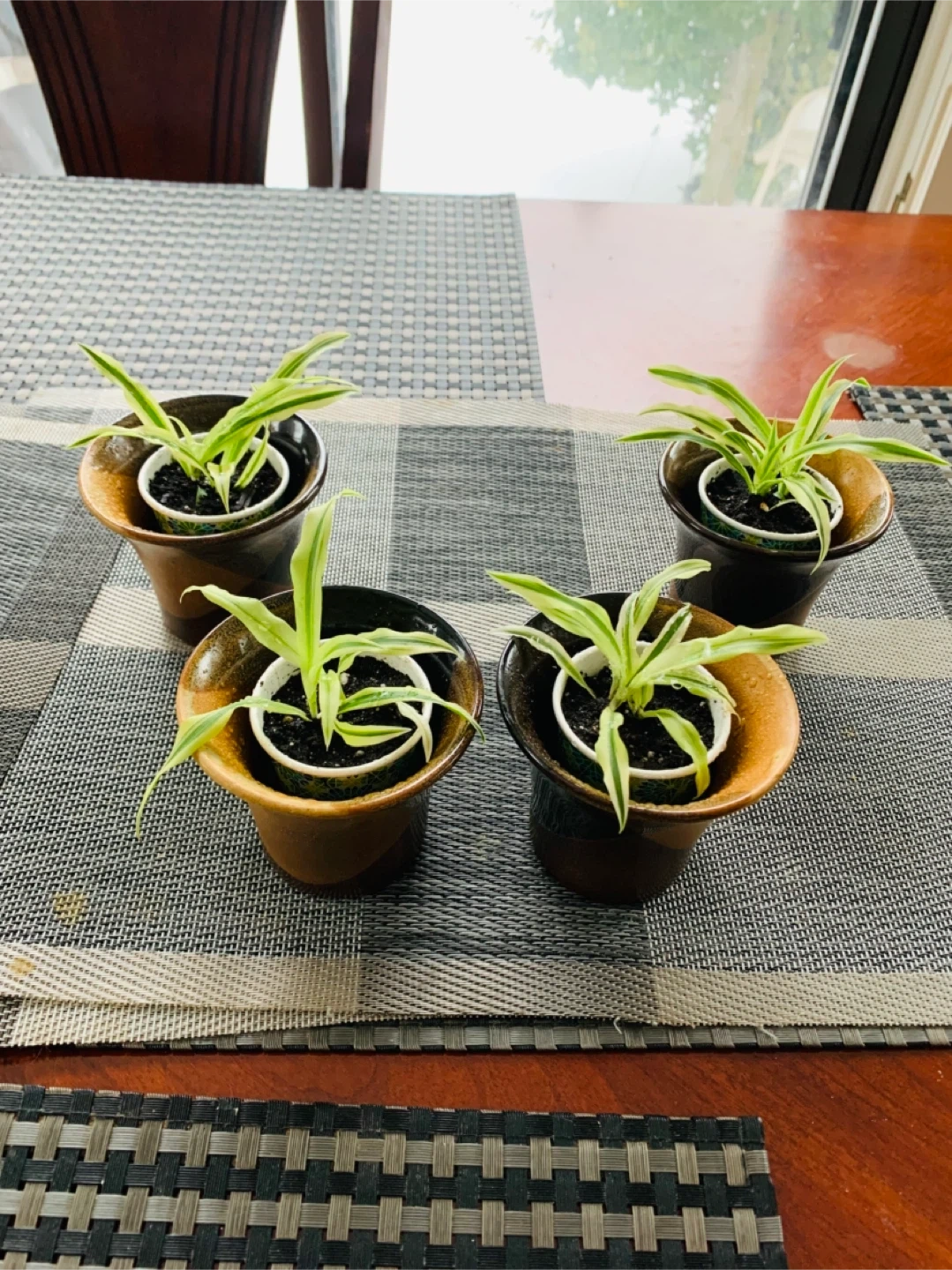 Healthy Baby Spider Plants (spiderettes) great for both indoors & outdoors! Potted Dec1. Pop can for size comparison.