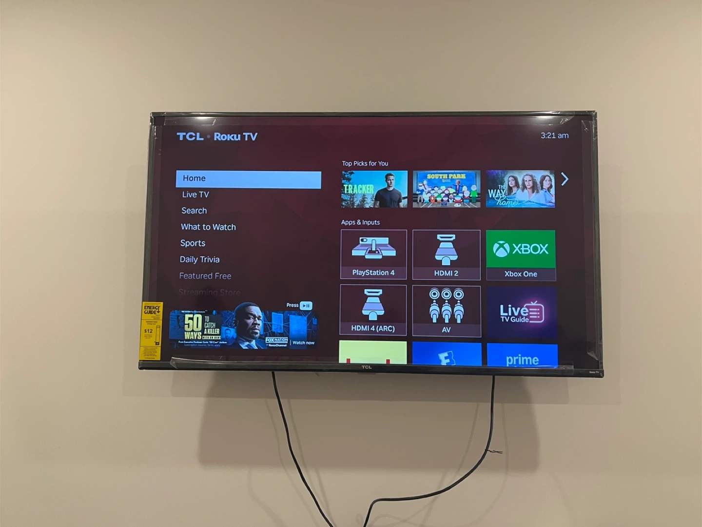 60πΊ TCL 50β 4-Series 4K UHD HDR Roku Smart TV + wall mount