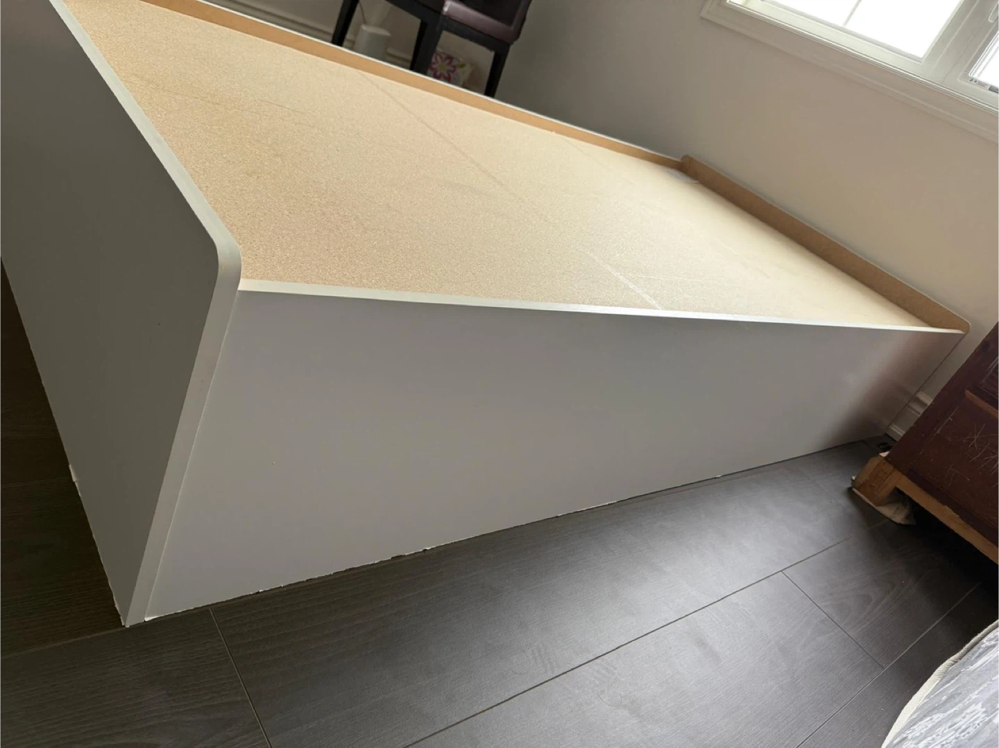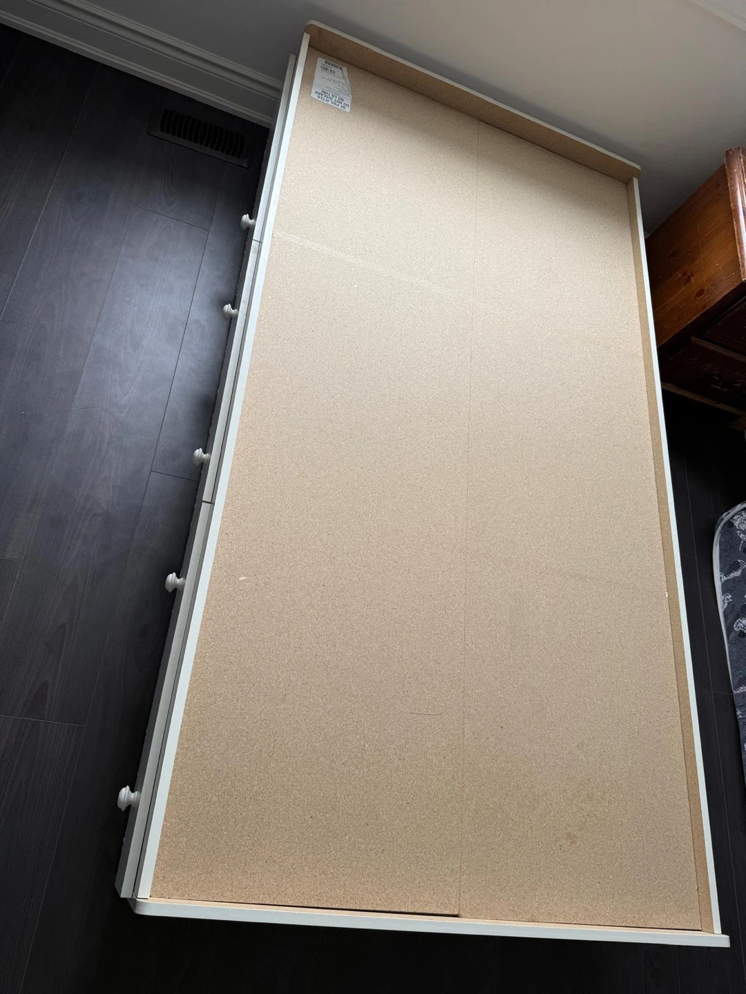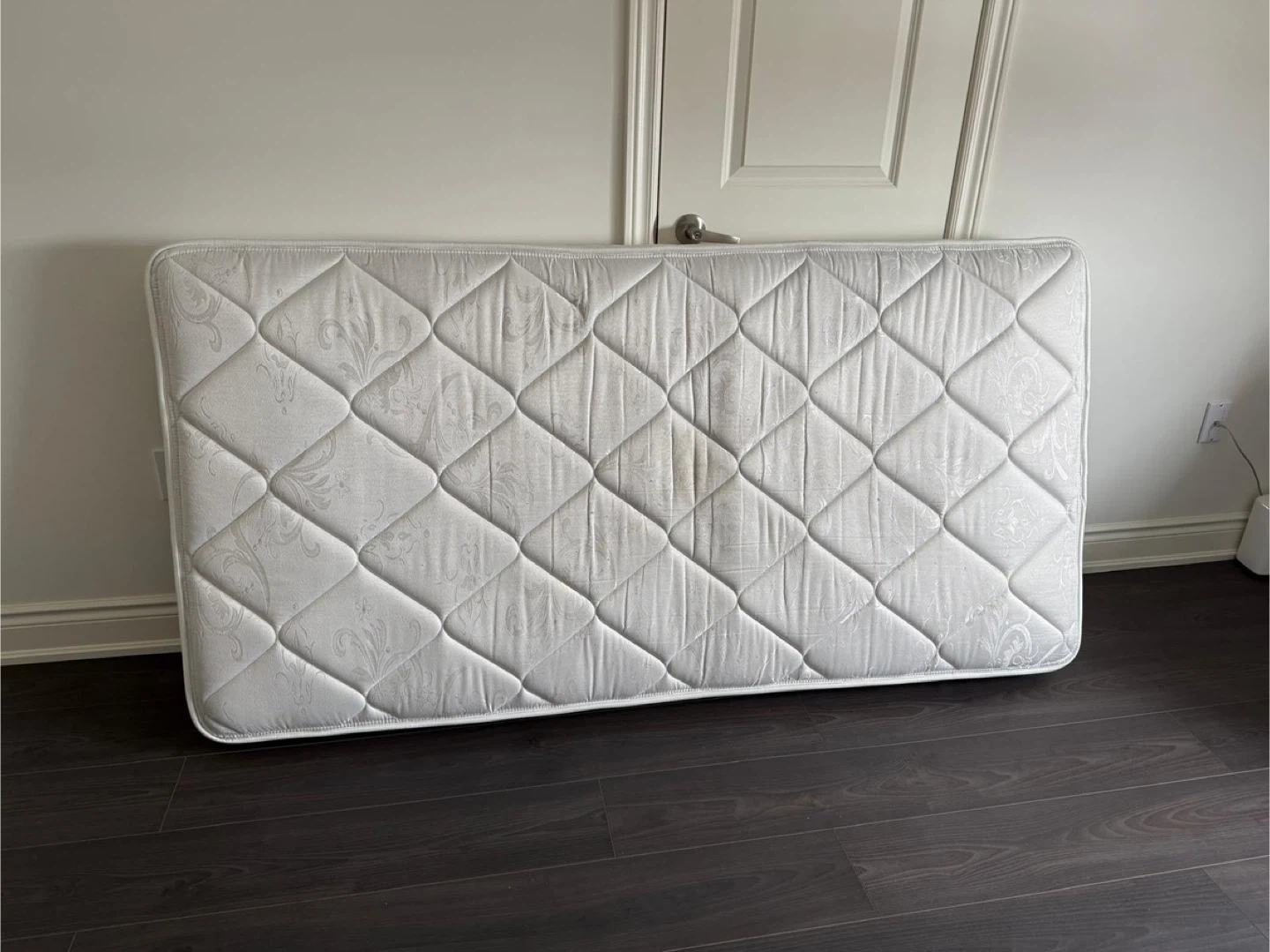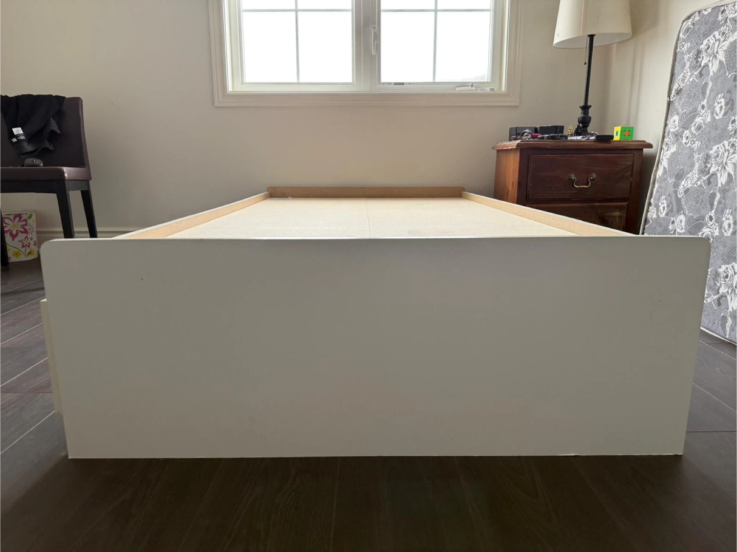 Functional single bed with spring mattress. It also has 3 spacious drawers. Fully detachable. Easy to carry. Can fit in a big SUV or a pickup truck. Mattress is also in a good condition.