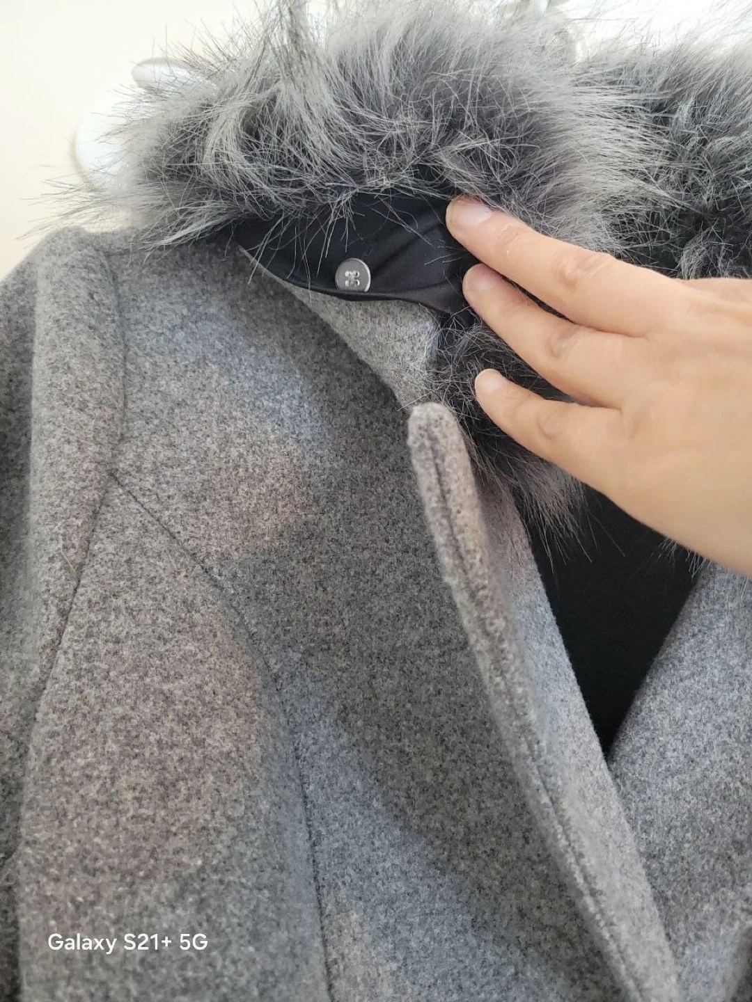 Laura Grey Wool Blend Coat with Fur Collar