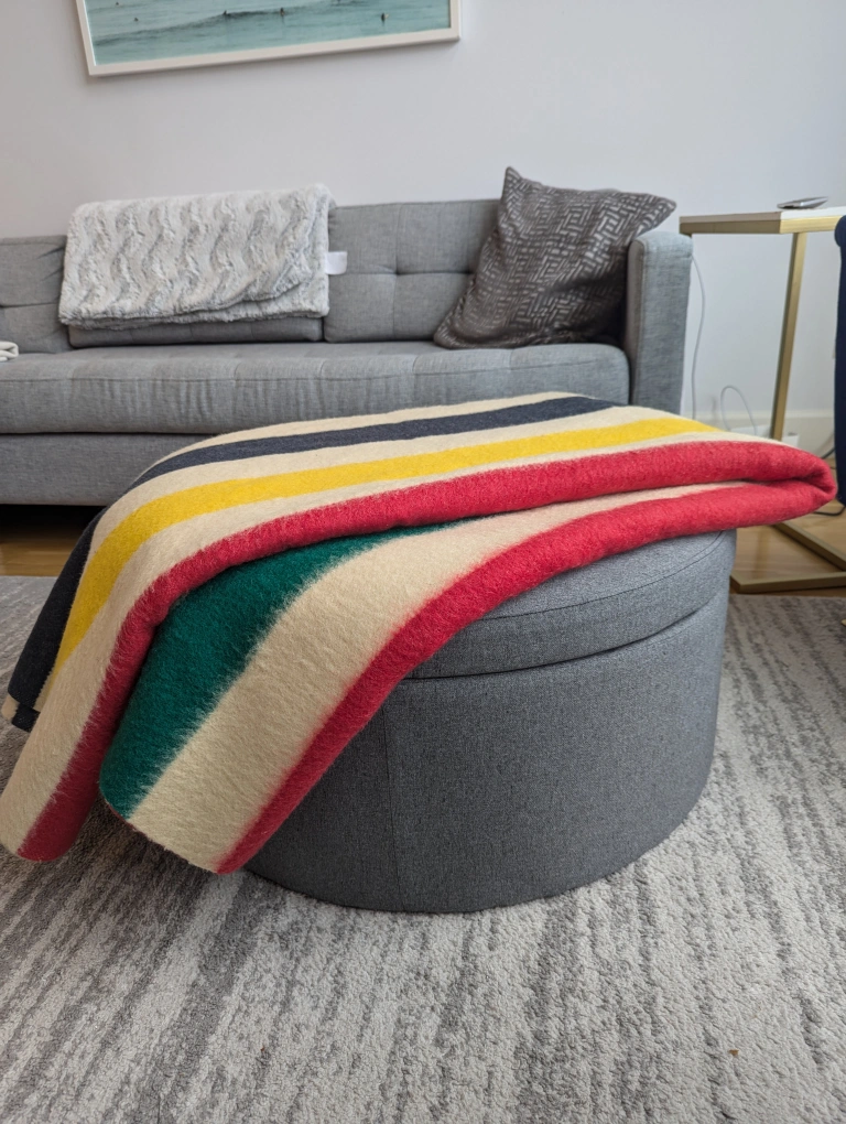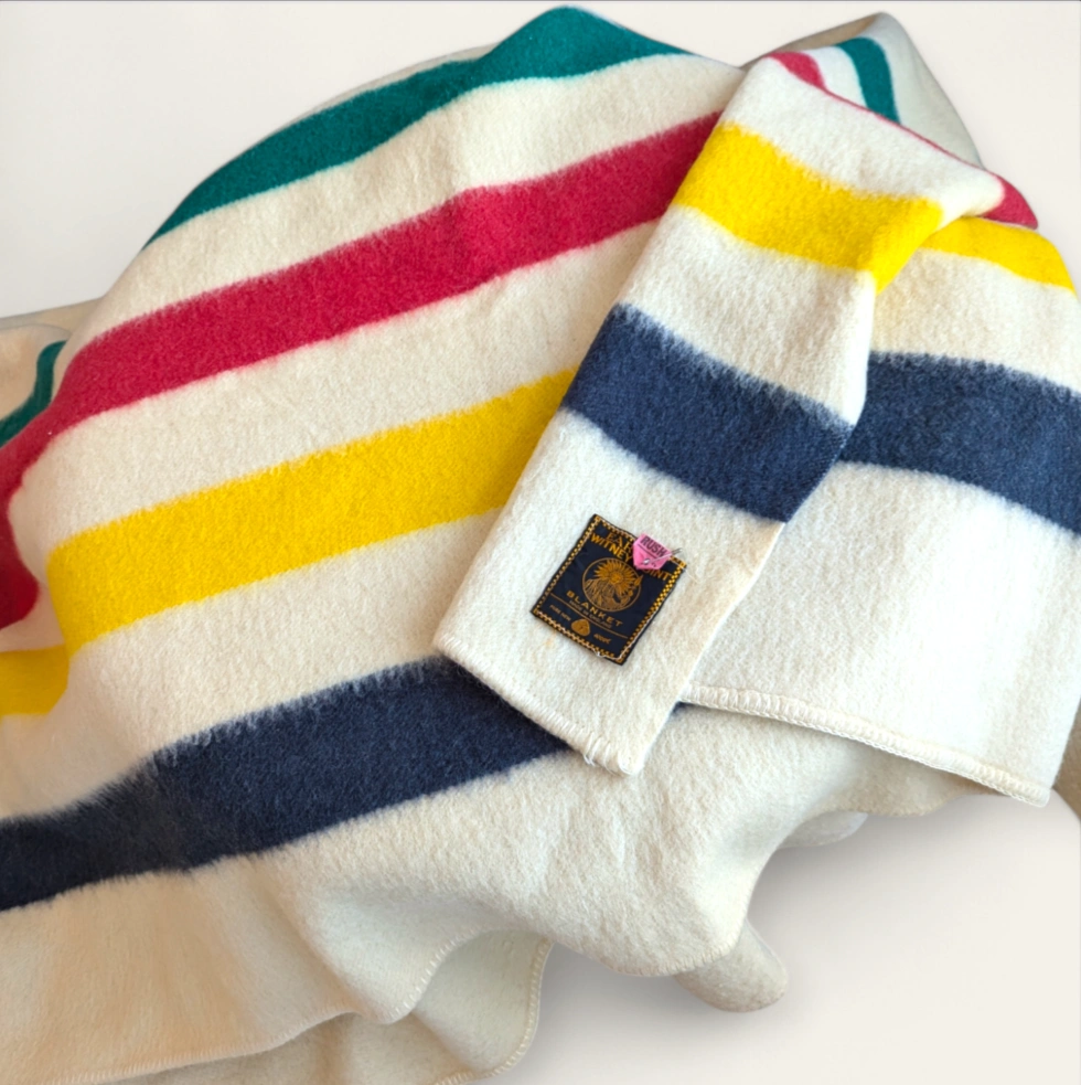 Vintage Pendleton Chief Joseph wool blanket. Multicolored stripes. Classic design. Soft and warm. Perfect for a couch or bed.