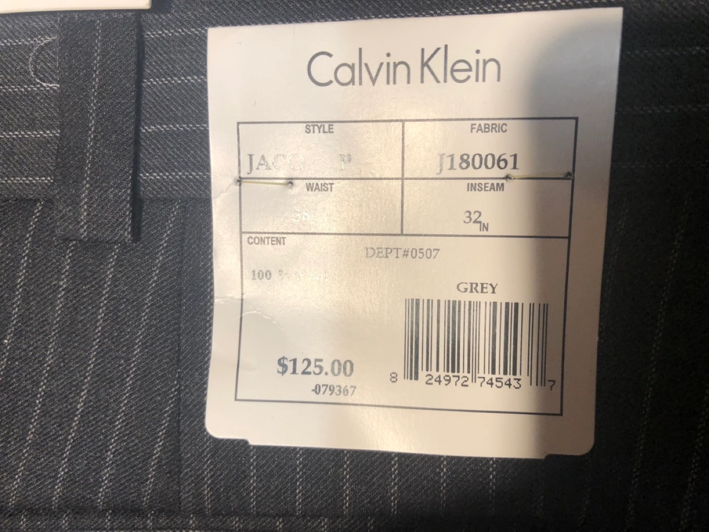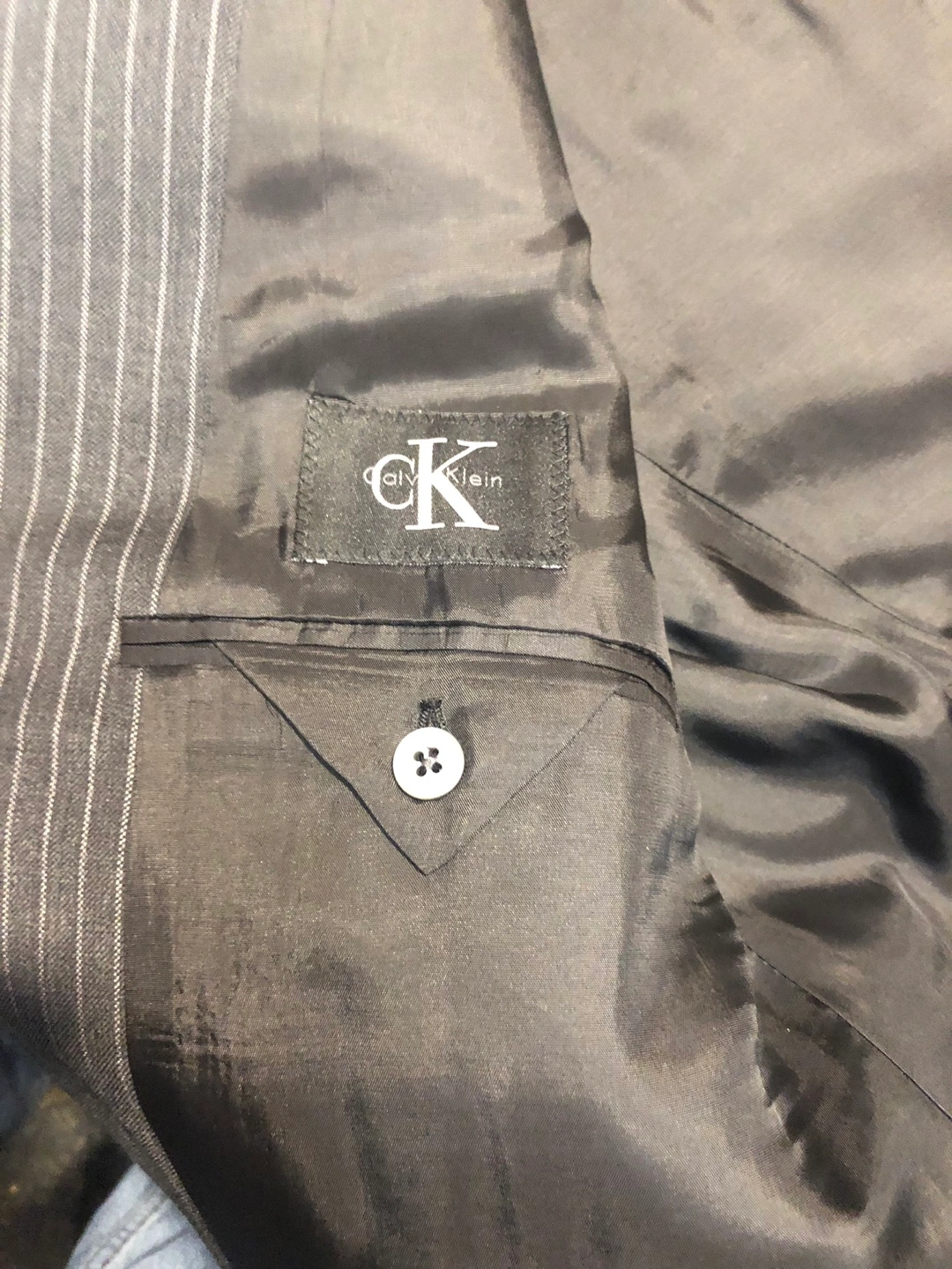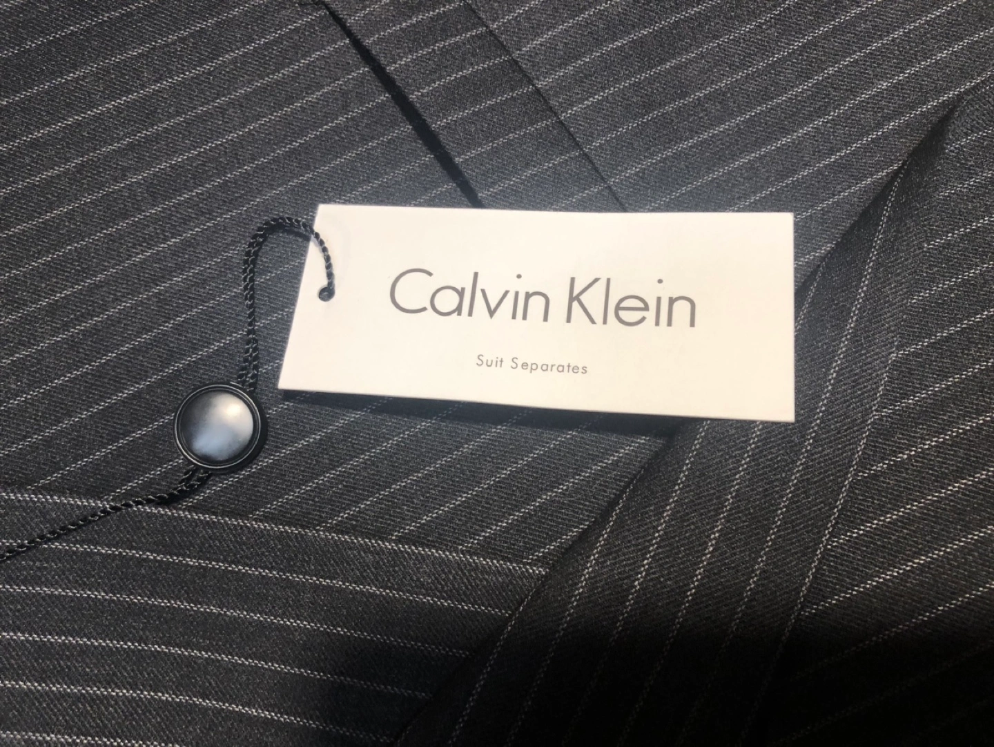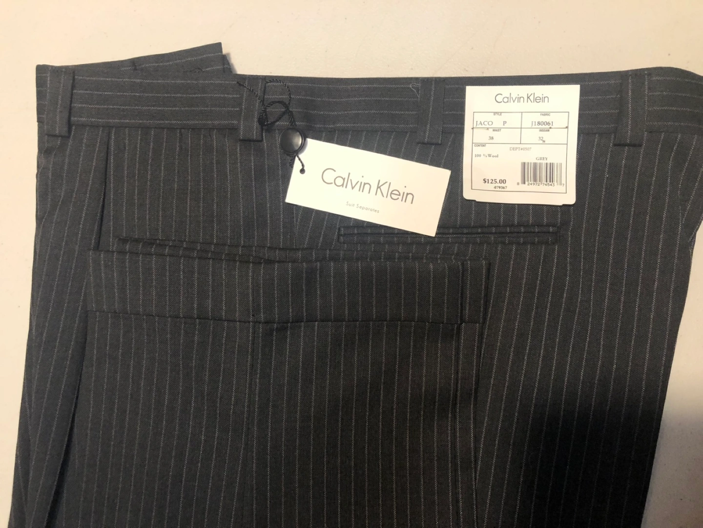 New Gray pinstripe suit jacket 100% Wool , Three button closure. Two flap pockets and one chest pocket.also the Matching Pants , Absolutely Beautiful, Jacket is 46 , Style Murr1 , Pants are 38 W X 32 long