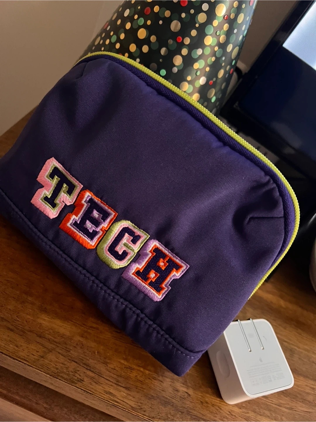 33Dimensions (Overall): 5 Inches (H) x 7 Inches (W) x 3 Inches (D) Weight: 76.4 Grams Material: 100% Recycled Polyester Daily-use tech pouch for essentials • Made of durable, lightweight material • Zipped closure keeps all items secure