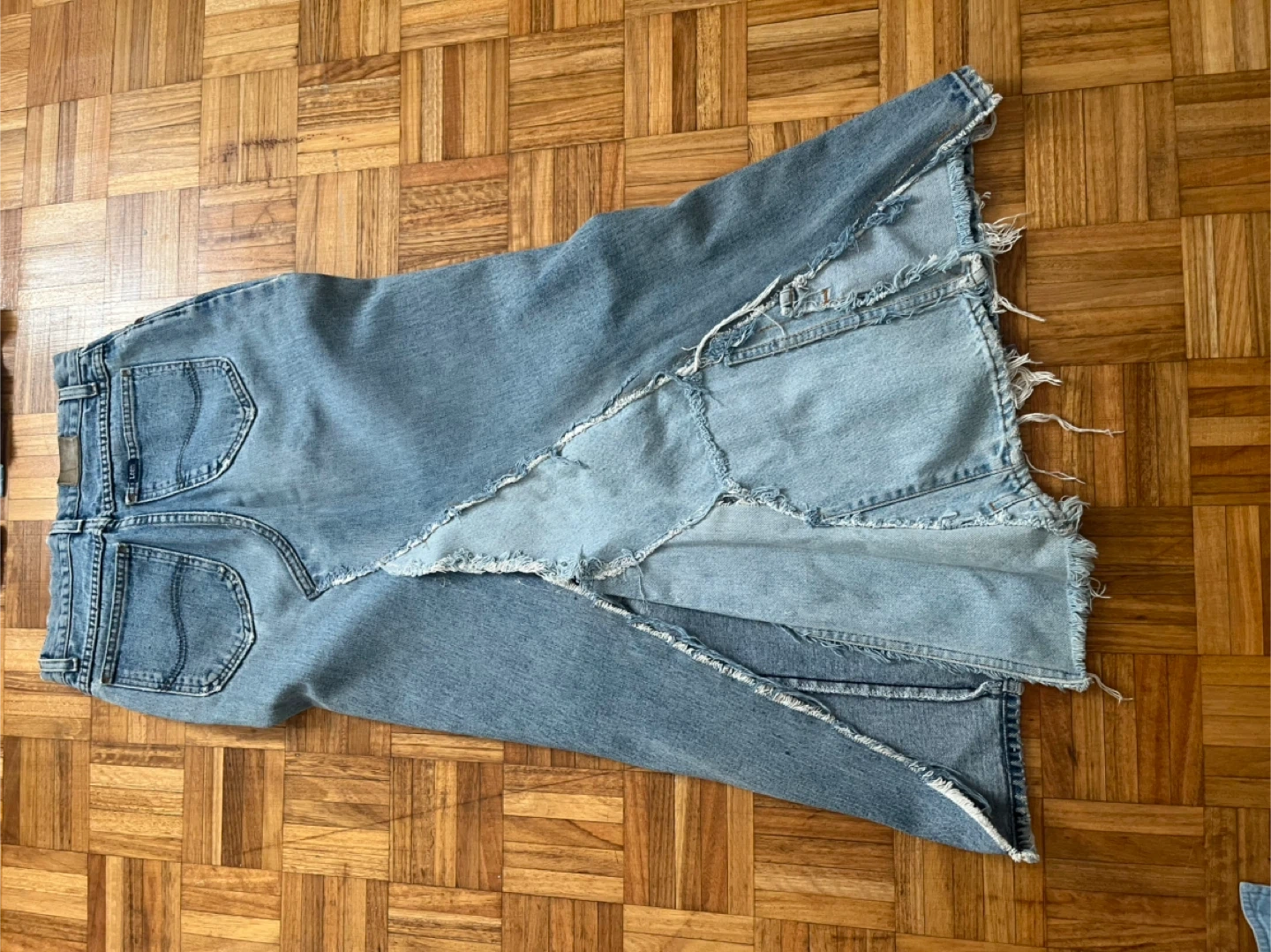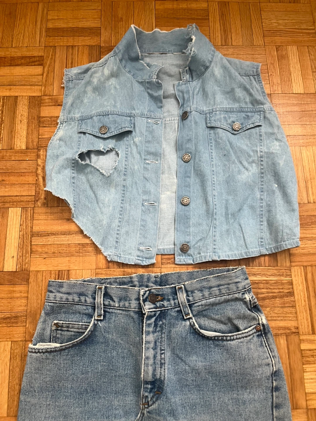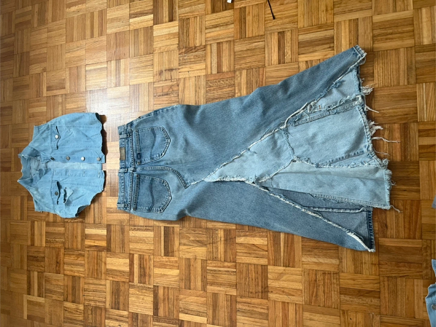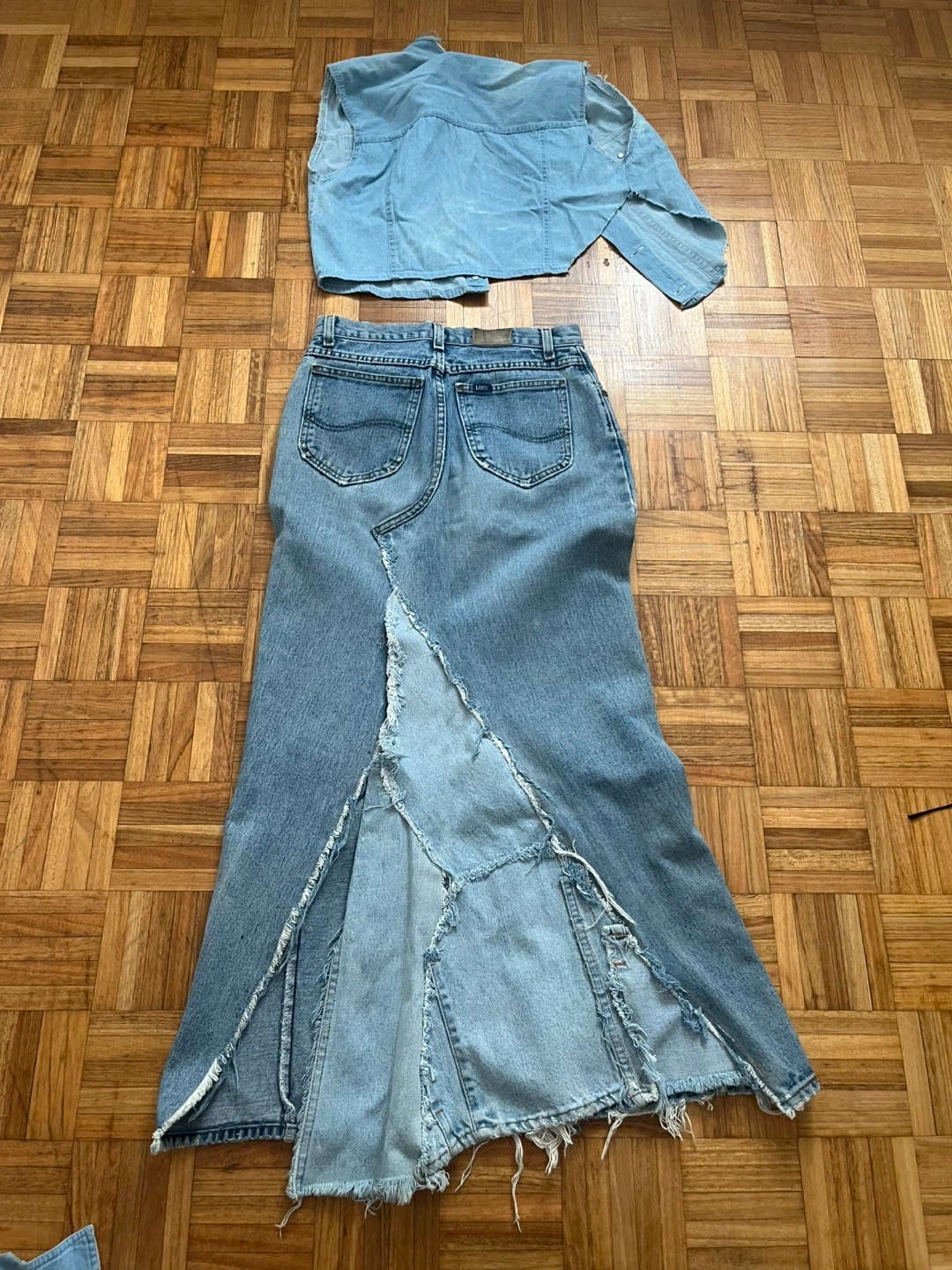 Both pieces are custom designed the skirt and fishtails out. The top is cut and bleached. Custom design designer pieces by famous designer in Toronto.