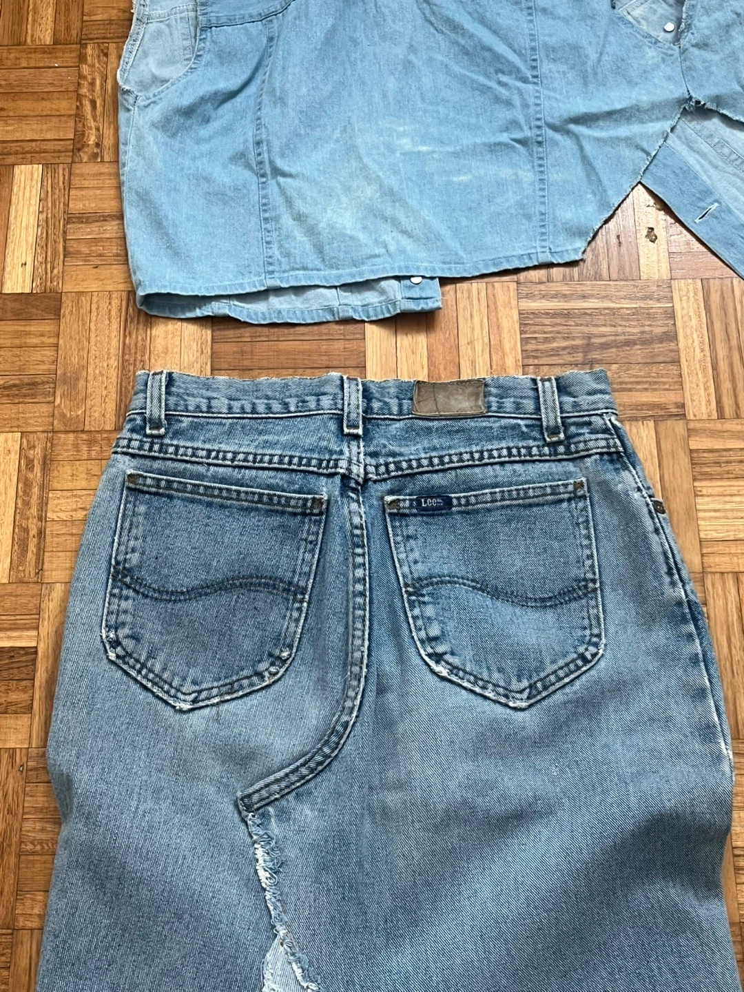 Lee Denim custom designed fishtail Maxi Skirt & Vest Set