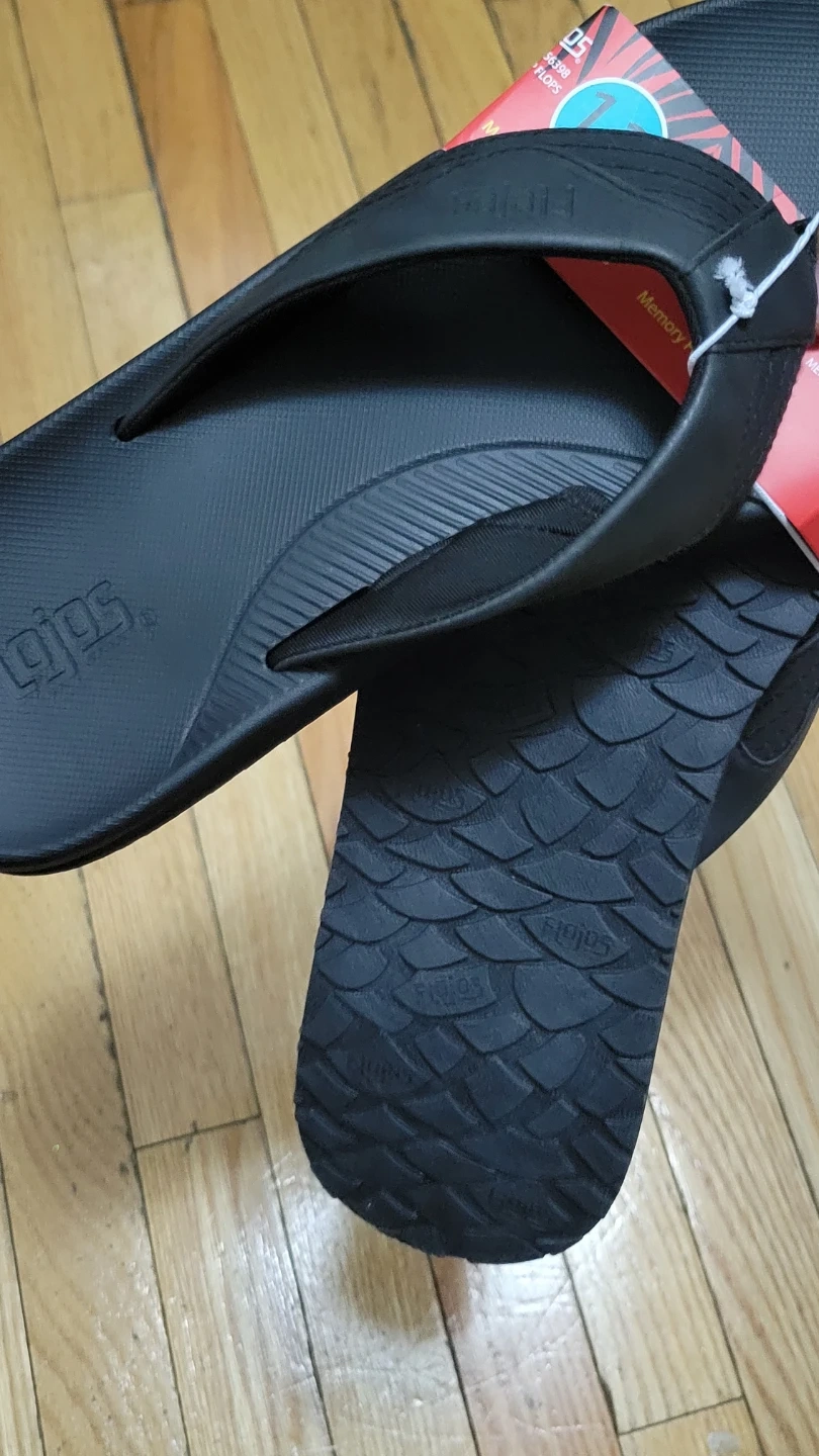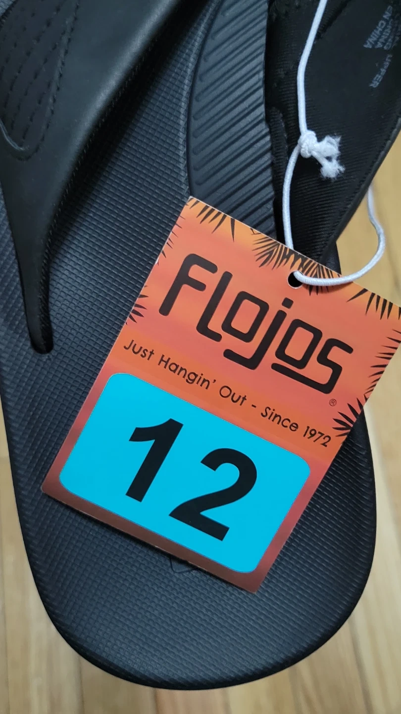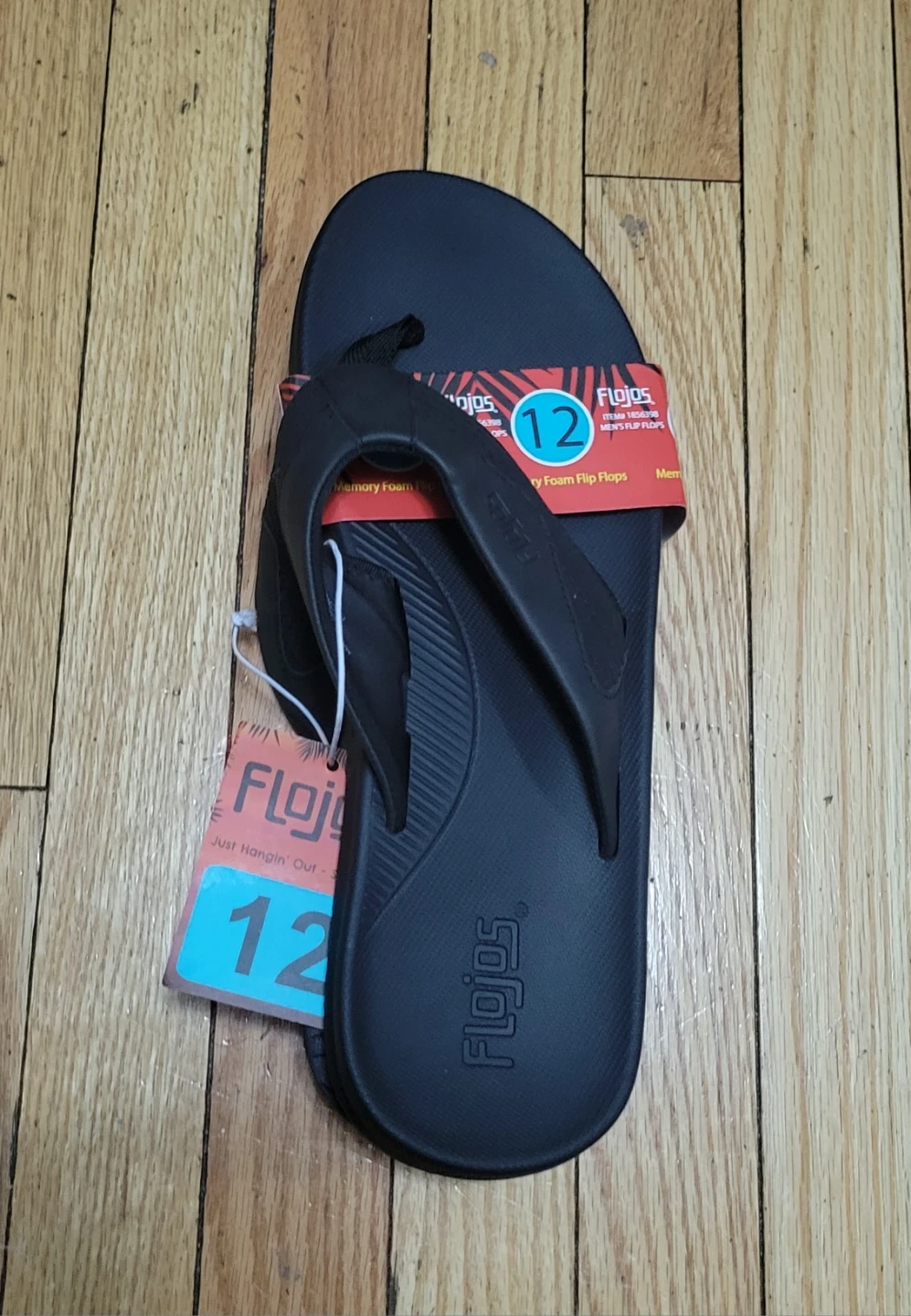 Selling a new pair of Flojos flip flops! They're black and have memory foam for extra comfort. These are a men's size 12.