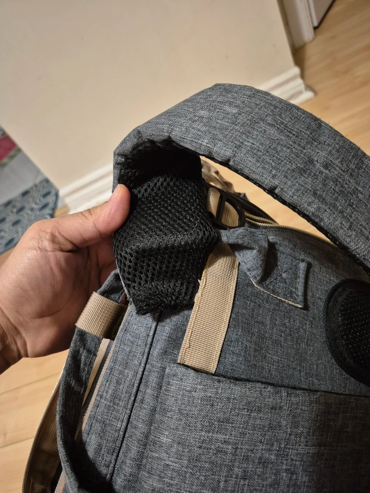 One shoulder strap is torn.