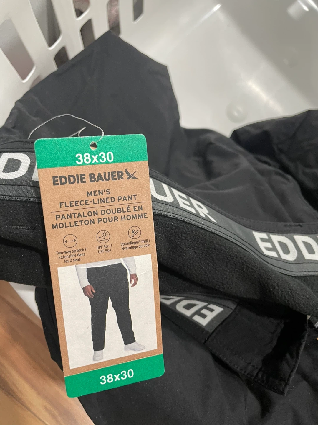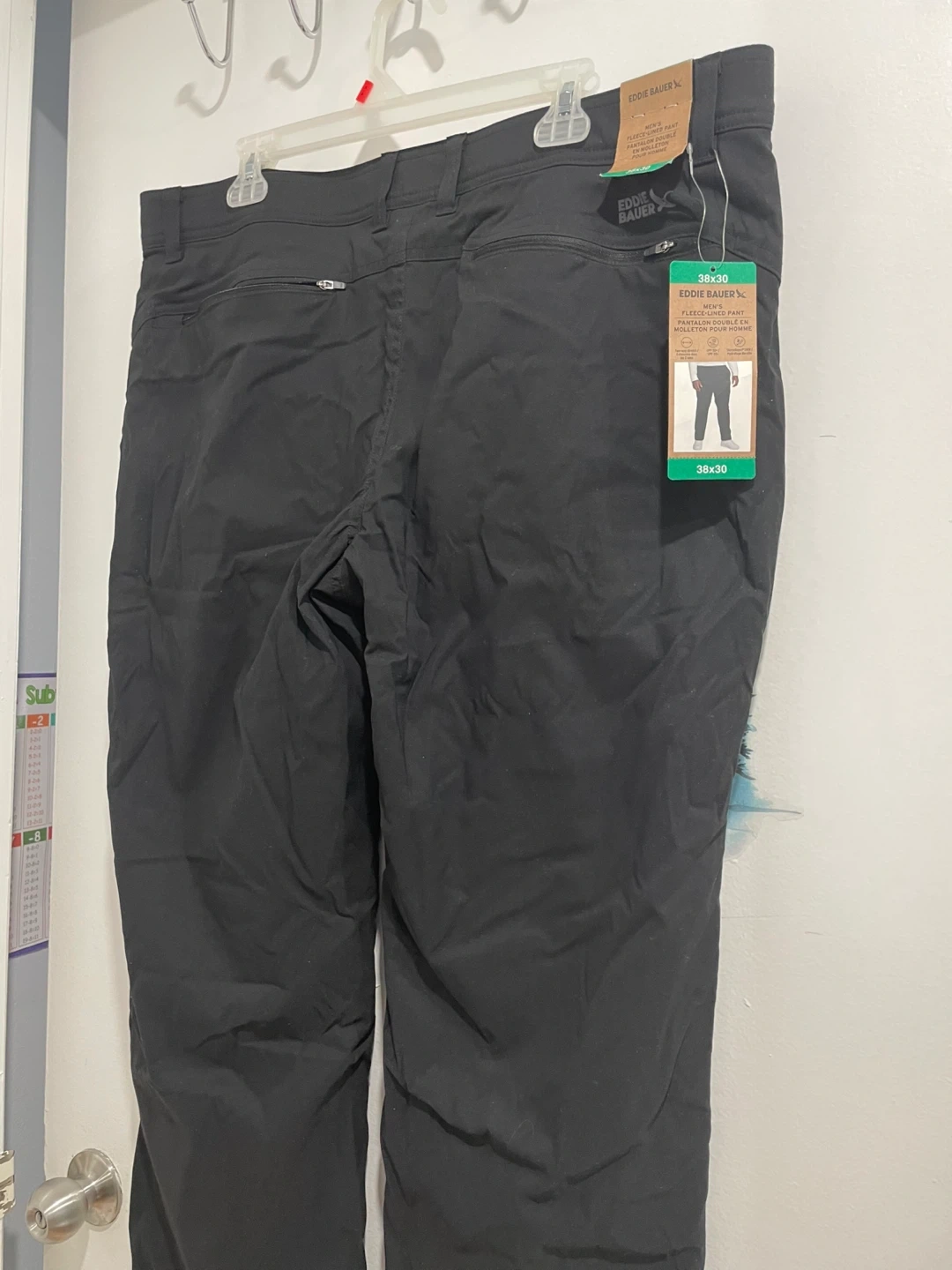 These Eddie Bauer fleece-lined pants are brand new with tags! They are size 38x30 and originally cost $32.99. Perfect for staying warm this winter!