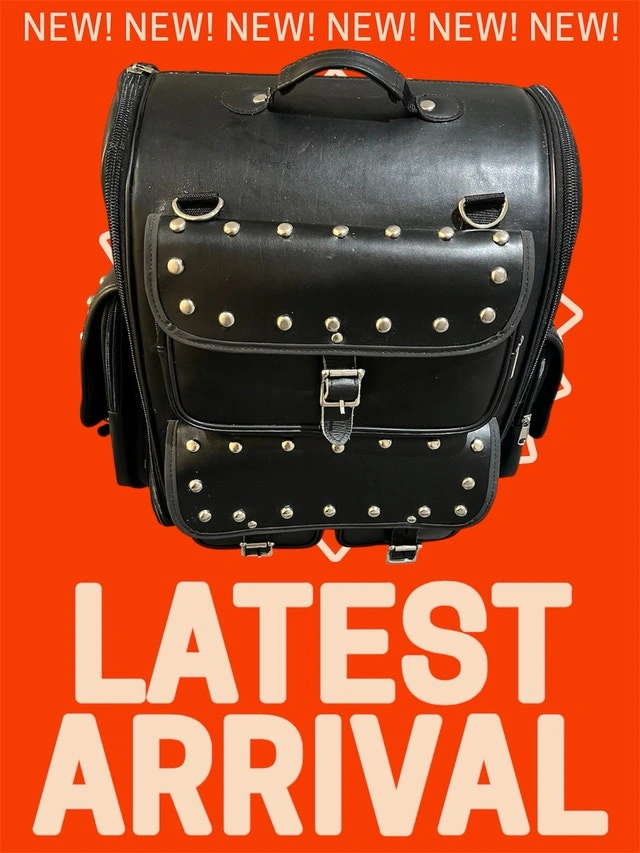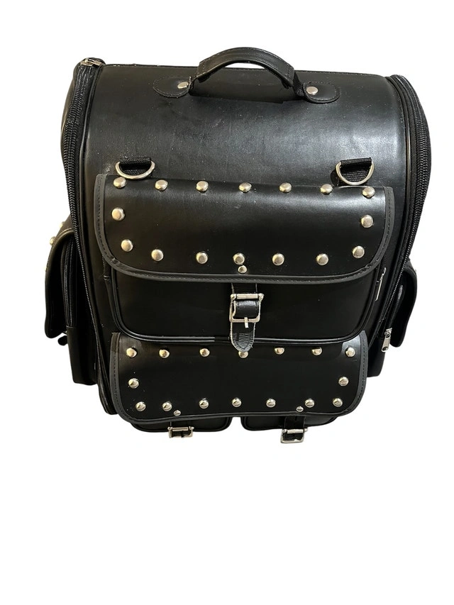 I'm selling a stylish and functional black leather backpack, perfect for carrying your essentials with an edgy flair. This backpack features multiple compartments and silver stud detailing, providing both ample storage and a unique aesthetic. It's in good condition and ready for its next adventure!