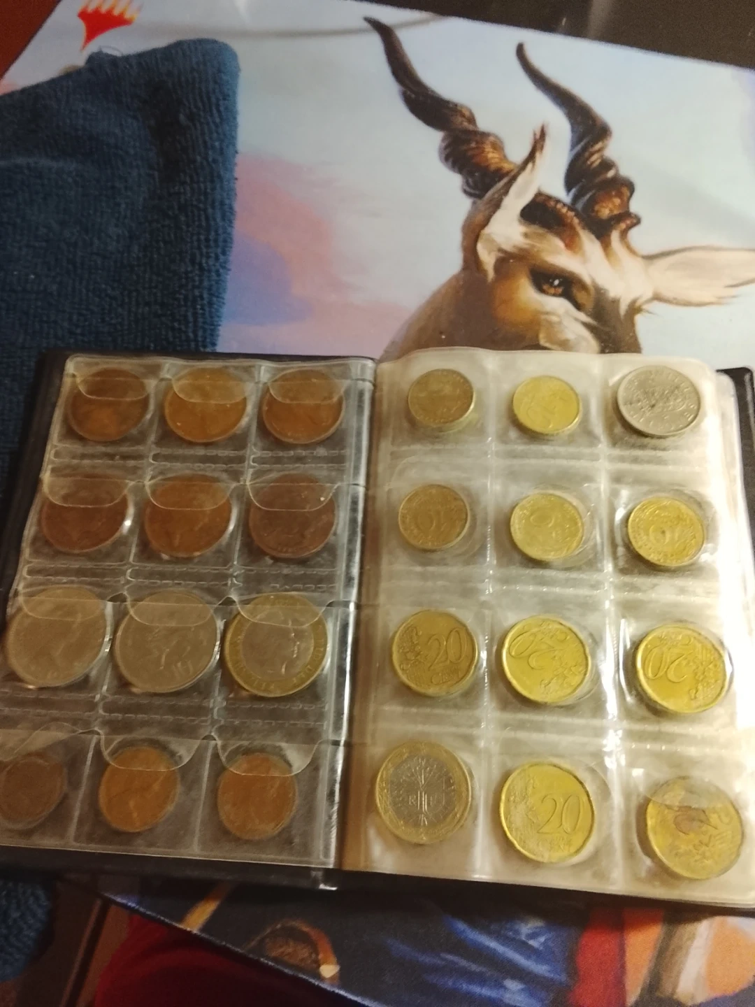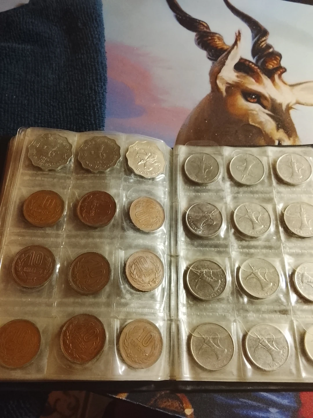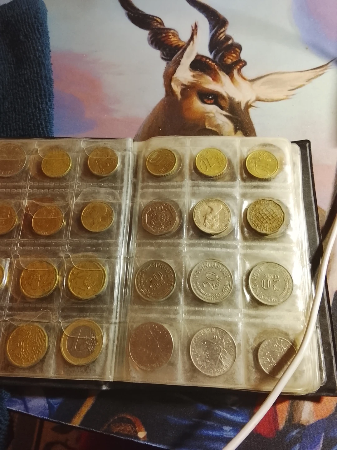 Coin album filled with various coins. Features multiple coin slots for organization and display. Includes coins from different countries and denominations. ..$50 each most of these coins are error with value , just contact me and we can talk and maybe you can get Luckey .I don't much about coins . Pm me. Thank as.