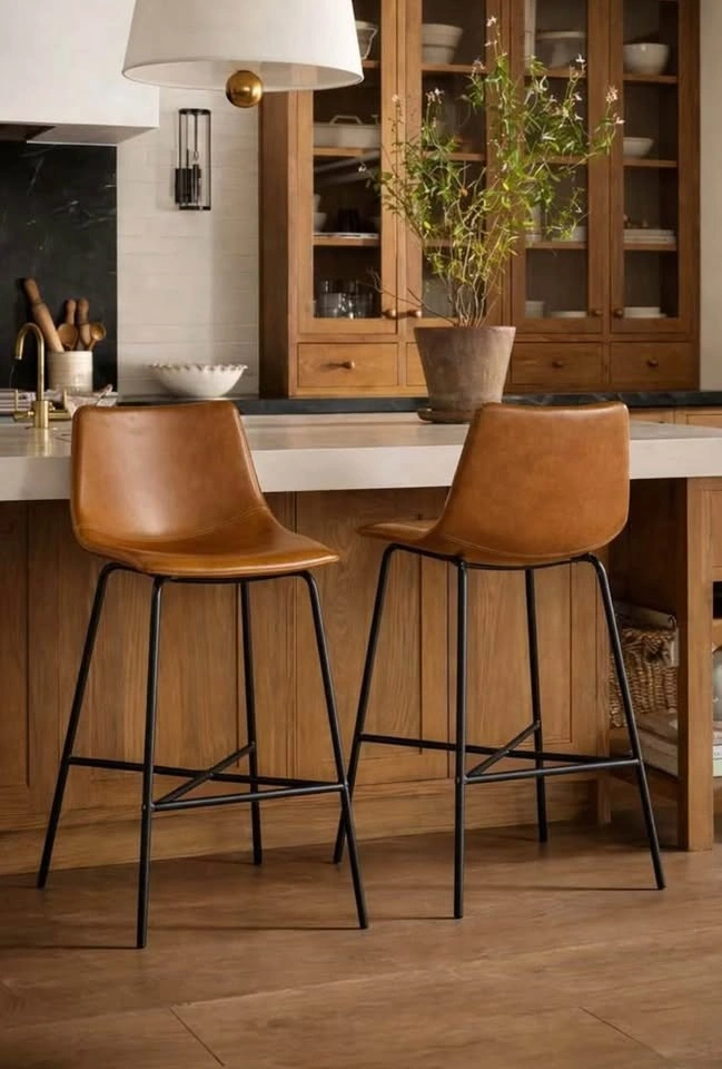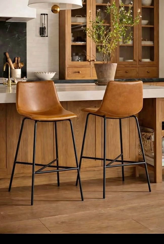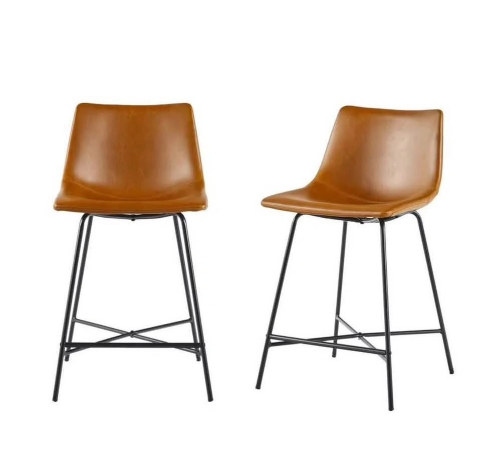Brand new in box set of 2 versatile and ergonomically designed vegan leather counter stools with metal legs. Price is for the set. Dimensions: 33.18''H x 19''W x 18.38''D. Floor to seat: 23.88''. Seat back height: 12.5''. Seat dimensions: 17.5''W x 11.88''D. Seat material: vegan leather, foam fill. Legs: powder coated steel with floor protectors. Pick up can be coordinated in North York, West Scarborough, or Downtown Toronto. Please message with any questions.