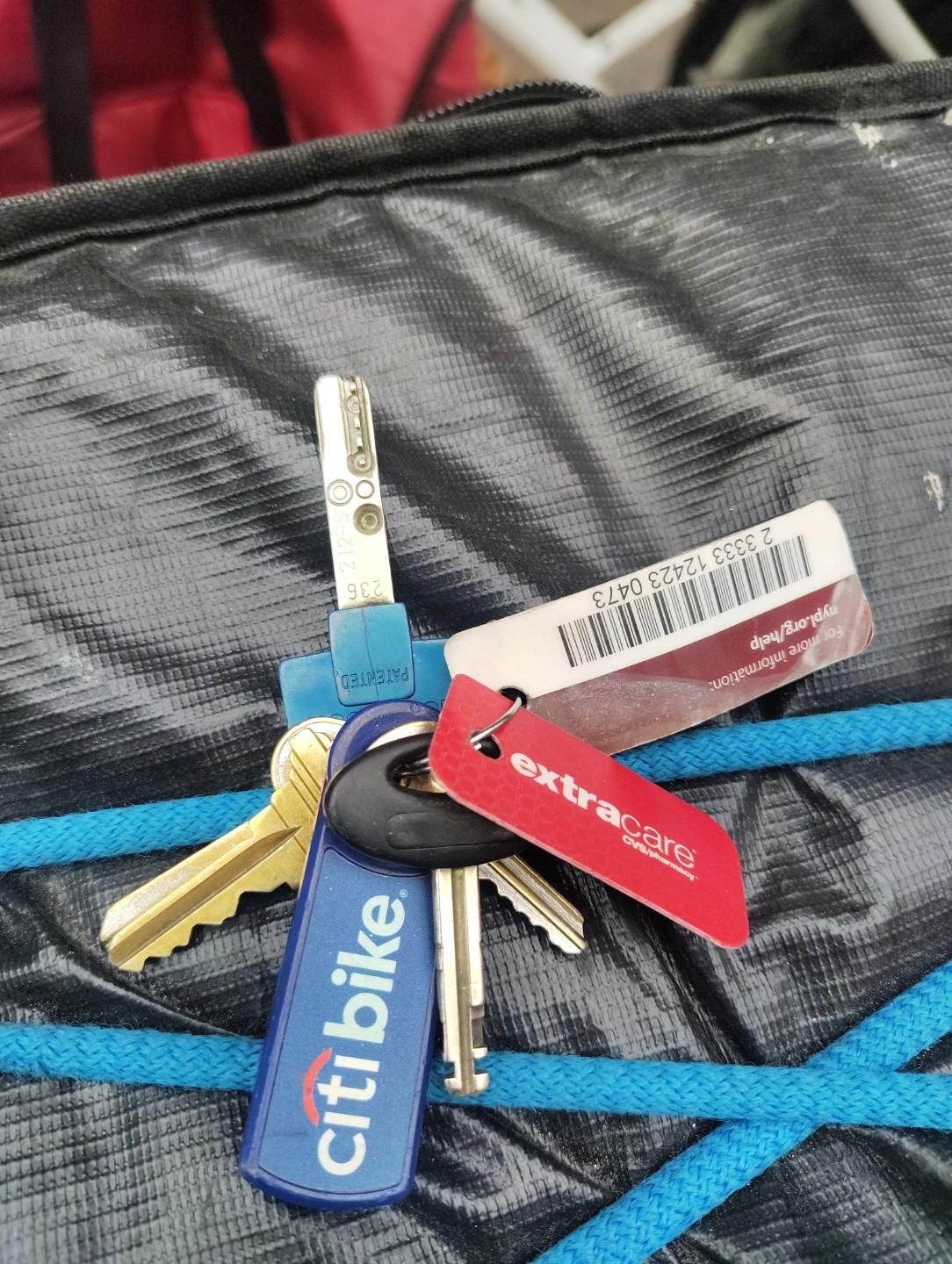 s includes a Citi Bike fob and a CVS ExtraCare card fob. Also includes two original keys and one patented key. Comes with informational tags from CVS and Citi Bike. Someone lost their keys, send me a message to get back