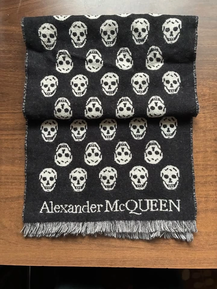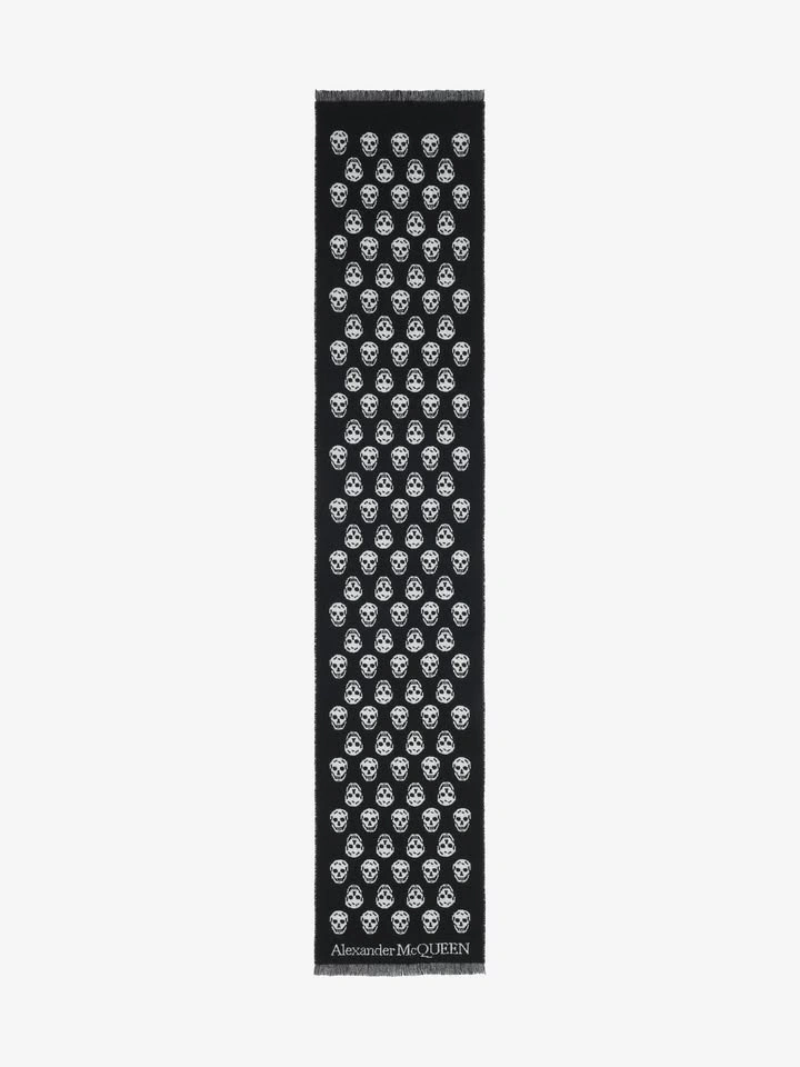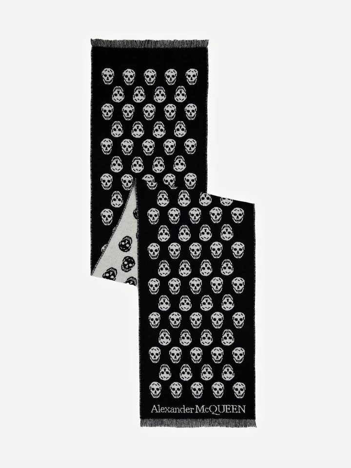 Alexander McQueen Skull Long Scarf Black Wool Italy Pre-owned