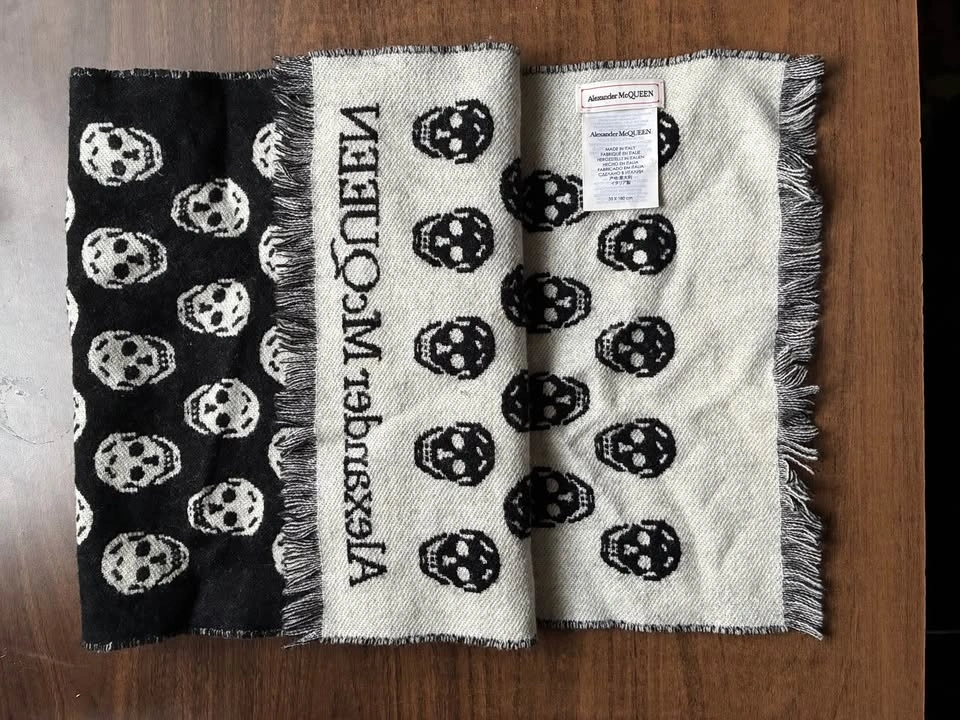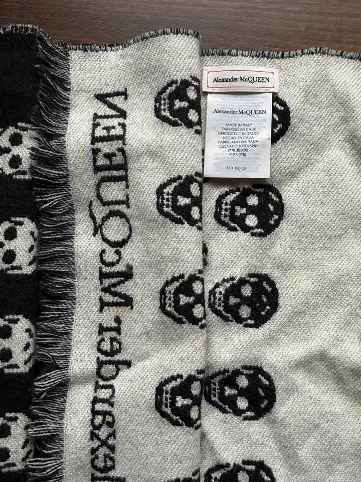 Alexander McQueen Skull Long Scarf in Black: Material - 100% Wool, Made in Italy. Pre-owned in very good condition. Authentic.