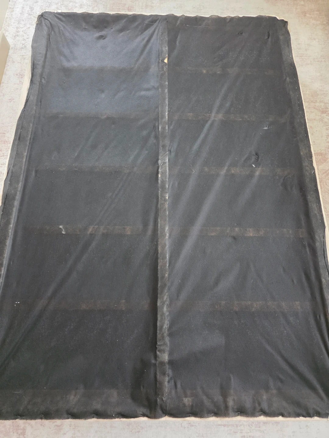 This is a box spring bed frame. It provides a sturdy foundation for your mattress. The frame has a neutral-toned fabric cover with a subtle quilted pattern.