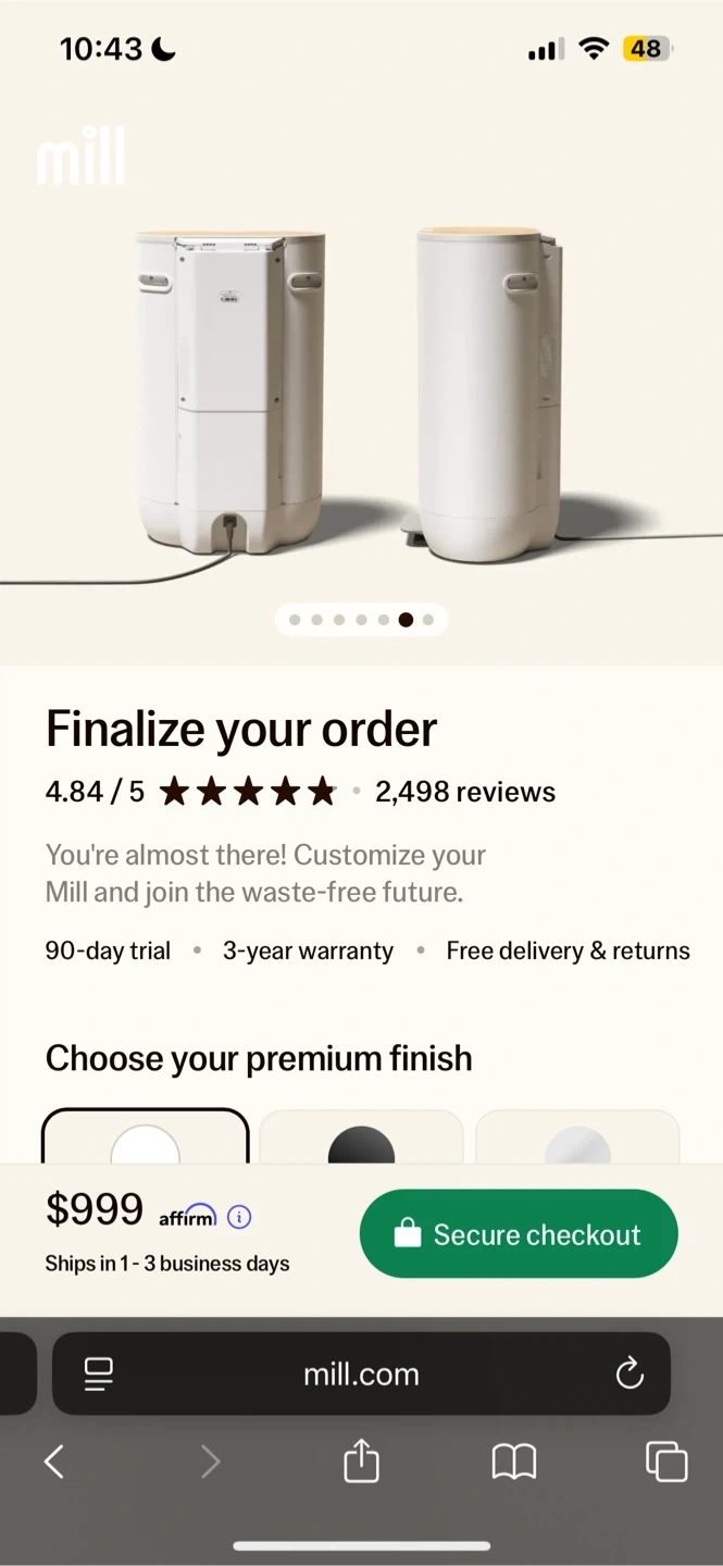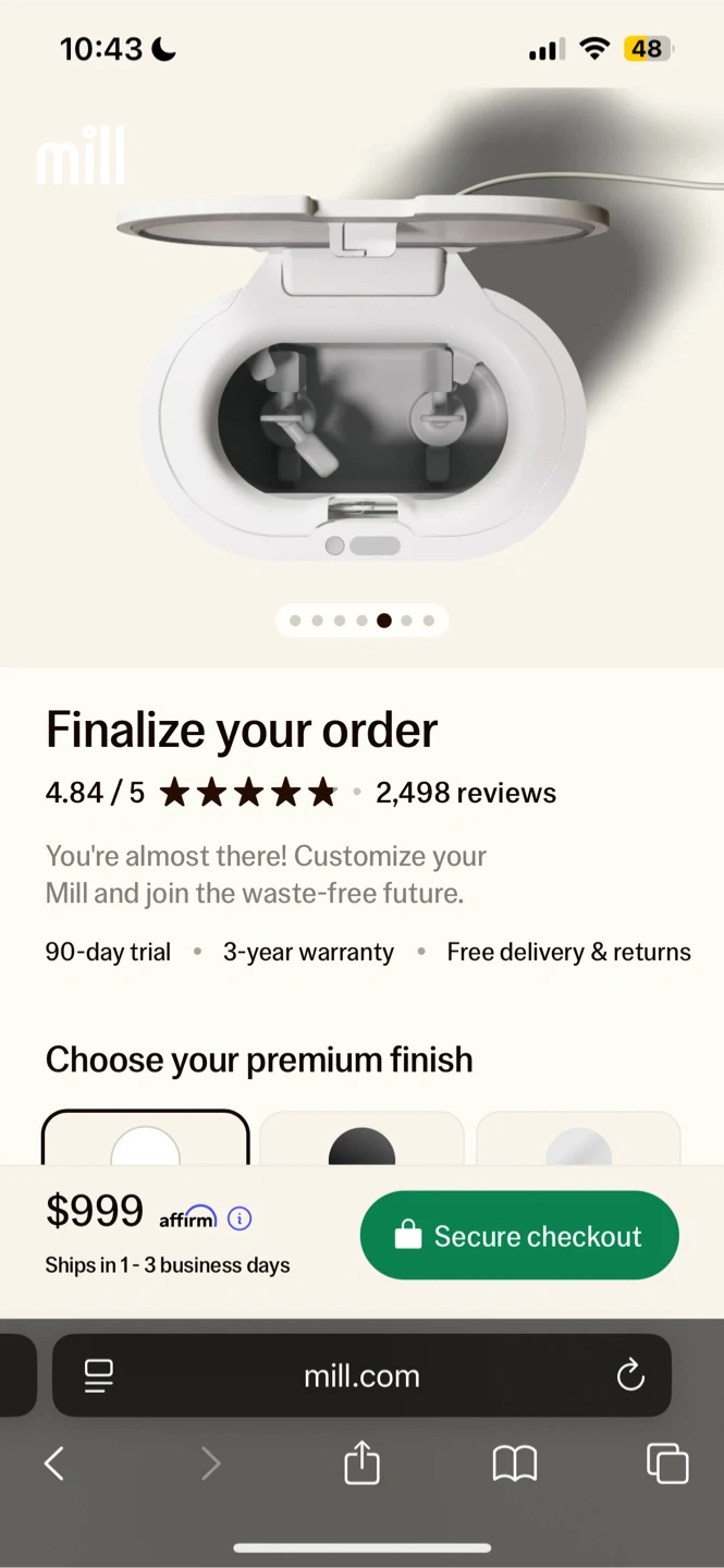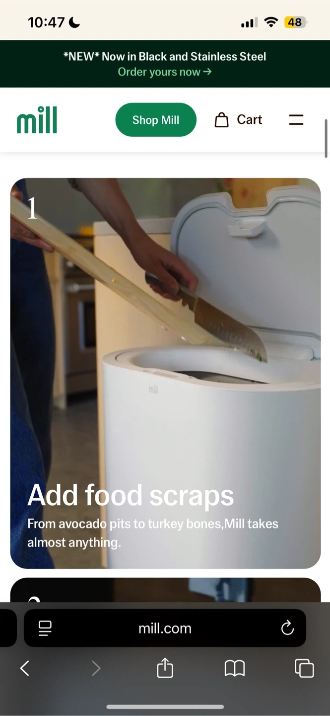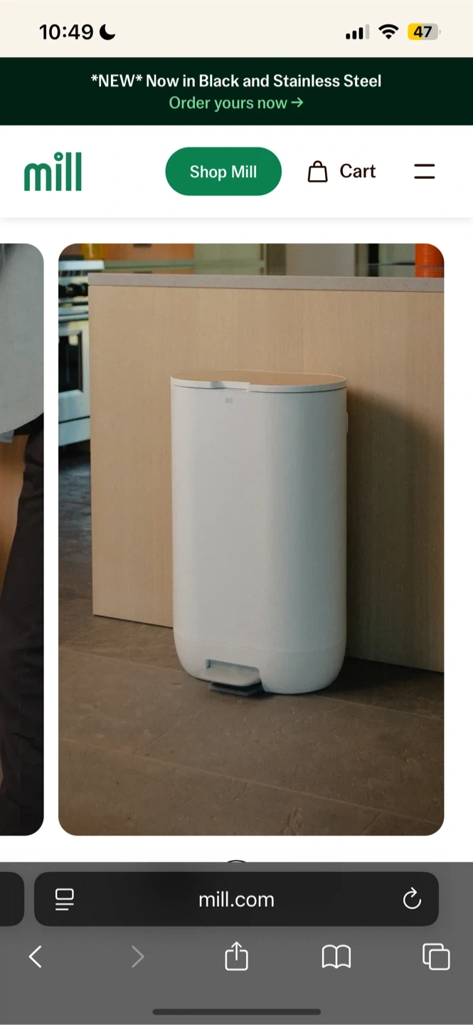Selling a Mill kitchen bin food recycler. It reduces your food's volume by 80%, so you can skip a garbage day or two! Mill works overnight, and you don't even have to press a button. It's designed to handle almost anything, from avocado pits to turkey bones. Comes with the original box