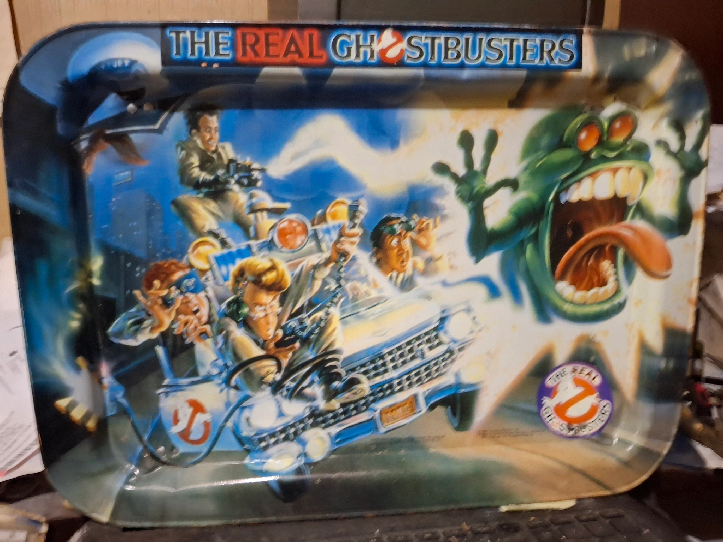 Selling a The Real Ghostbusters tray! It features the Ghostbusters in Ecto-1 and Slimer