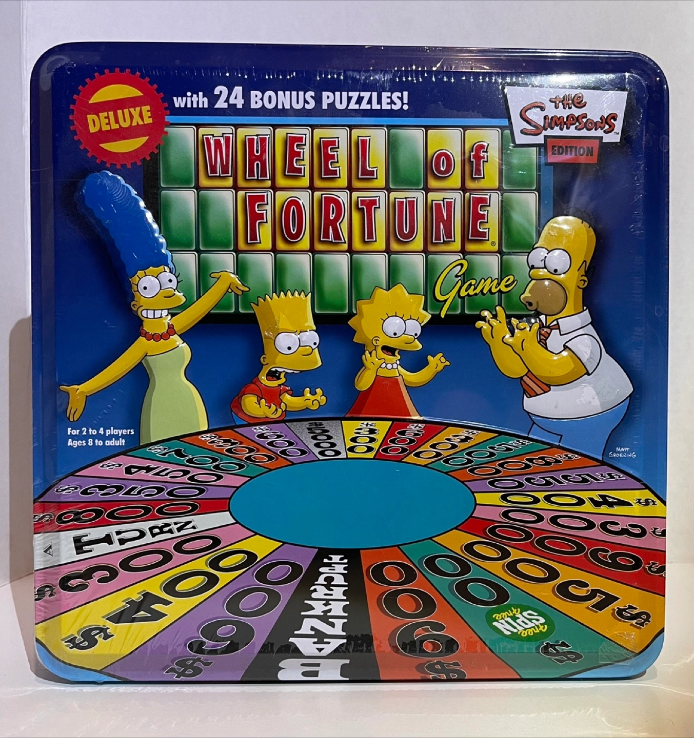 55Selling a Deluxe Edition of The Simpsons Wheel of Fortune Game! It comes with 24 bonus puzzles and is suitable for 2 to 4 players, ages 8 to adult