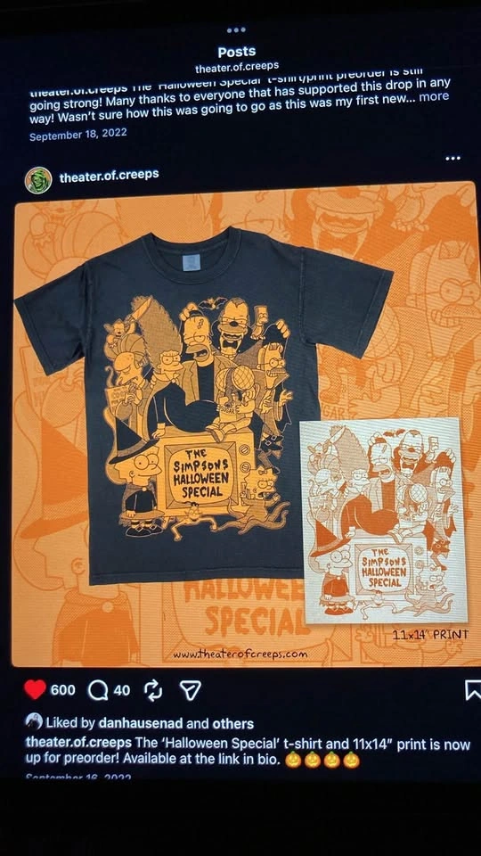 65Never worn, The Simpson Treehouse of Horrors designed by theater of creeps. Printed on comfort colors. Cool Design perfect for any Simpsons fan. Available for pickup in portage park.
