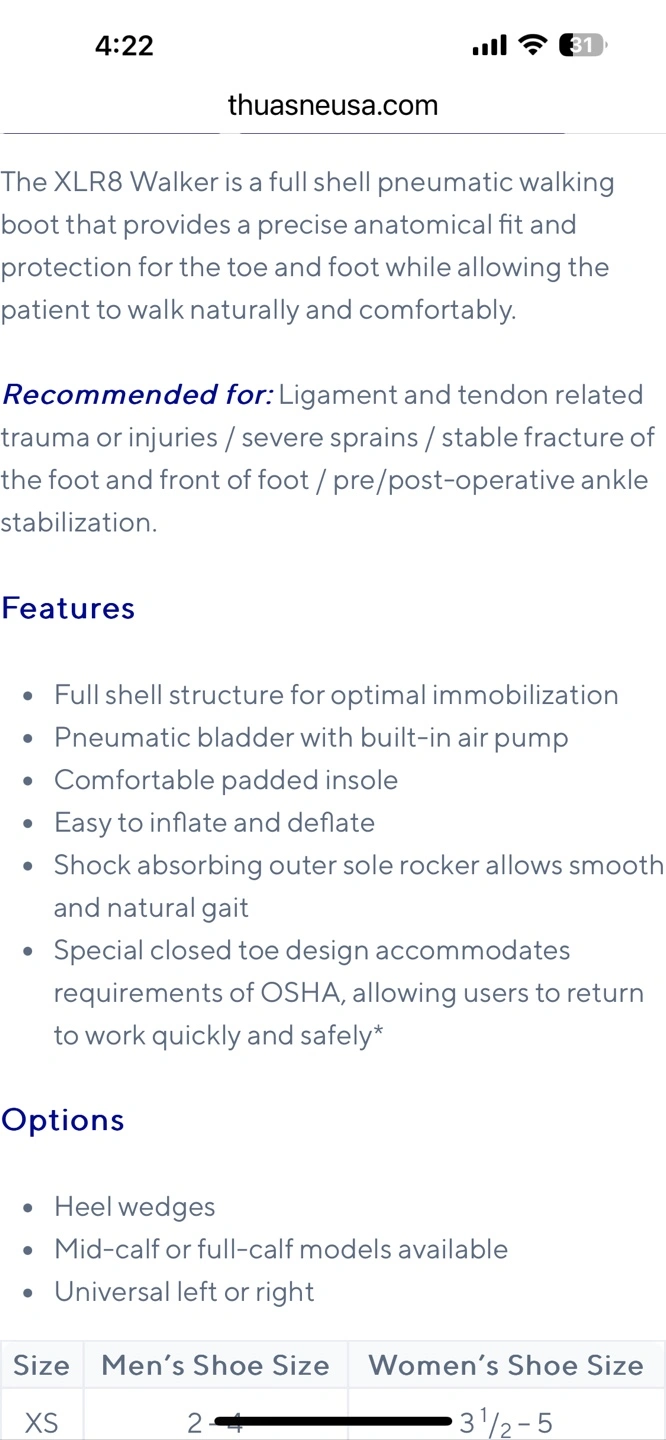 XLR8 Series - Pneumatic walking boot. Lightly used. Size L (Men’s Shoe Size 10-13). Pickup on 72nd and 1st in Manhattan.