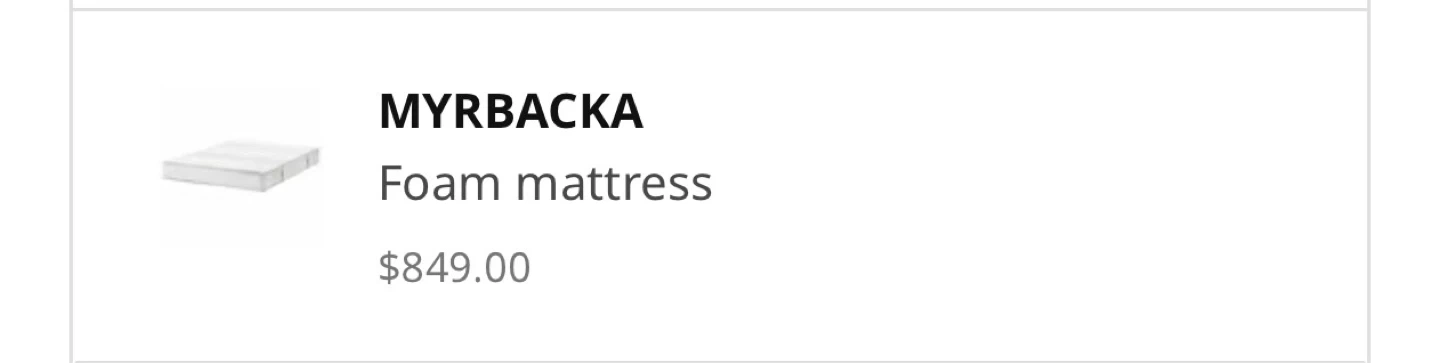 MYRBACKA mattress from Ikea: original price after tax is $960, selling for $500.