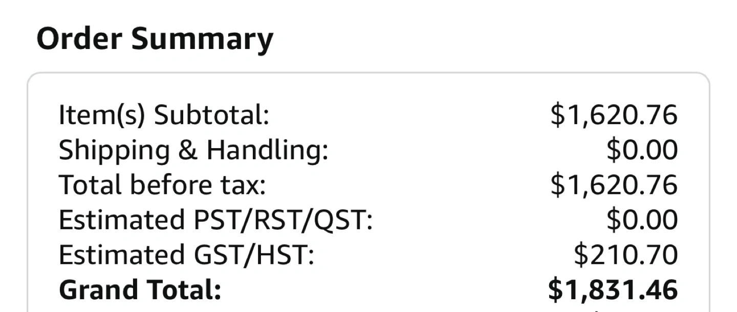 Bed frame from Amazon: original price after tax is $1800, selling for $1100.