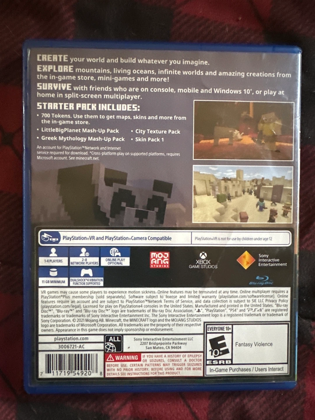 Create your world and build whatever you imagine in Minecraft for PS4. This edition includes a starter pack with 700 tokens for in-game currency. It's compatible with PlayStation VR for an immersive experience.