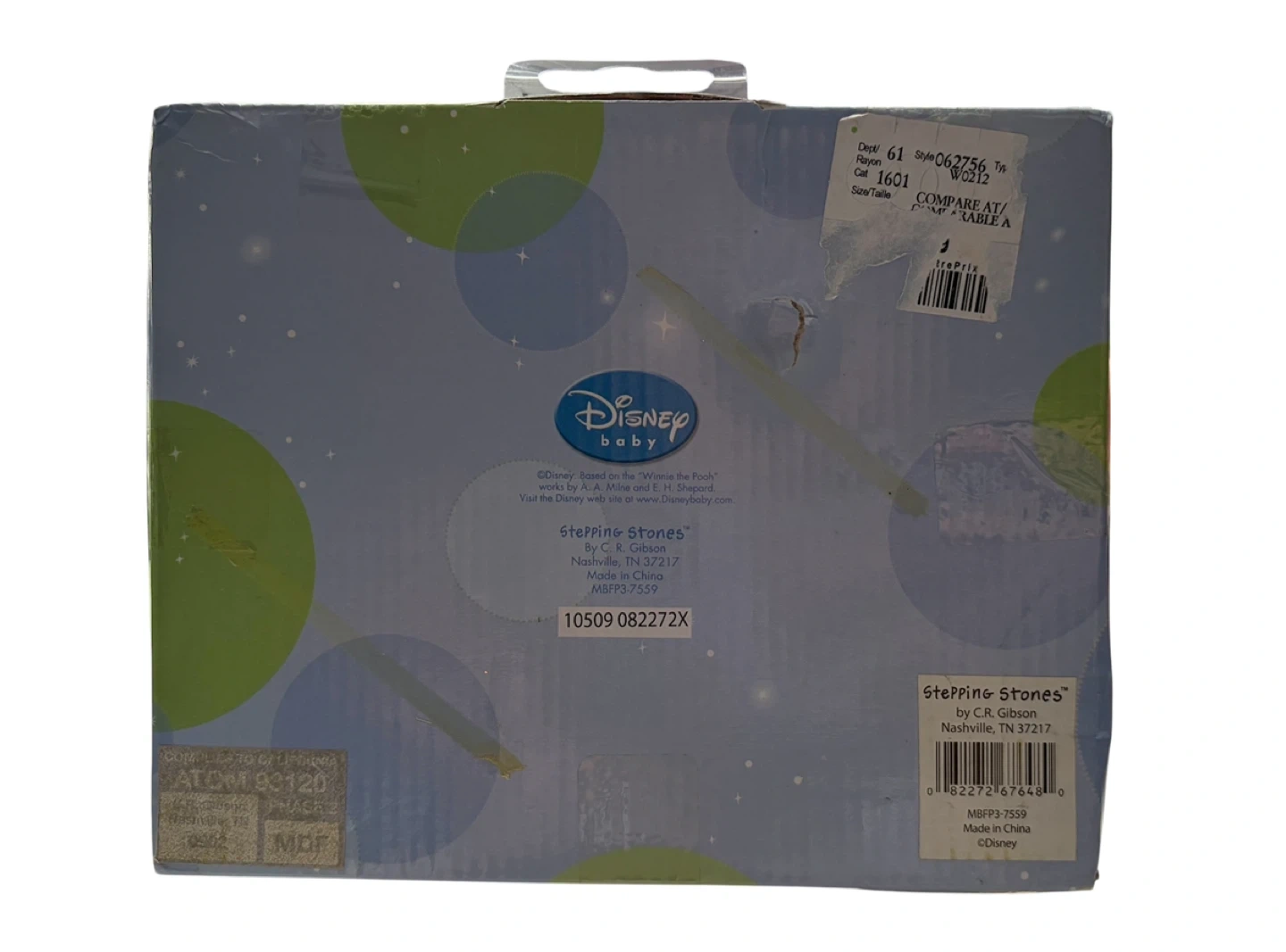 Charming Disney Baby gift box. Features playful blue and green design. Ideal for baby gifts.