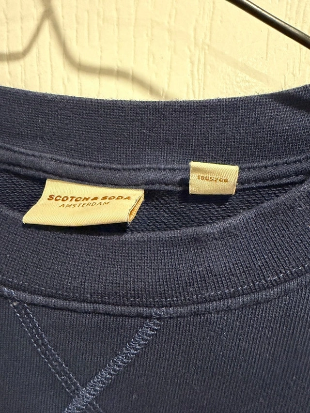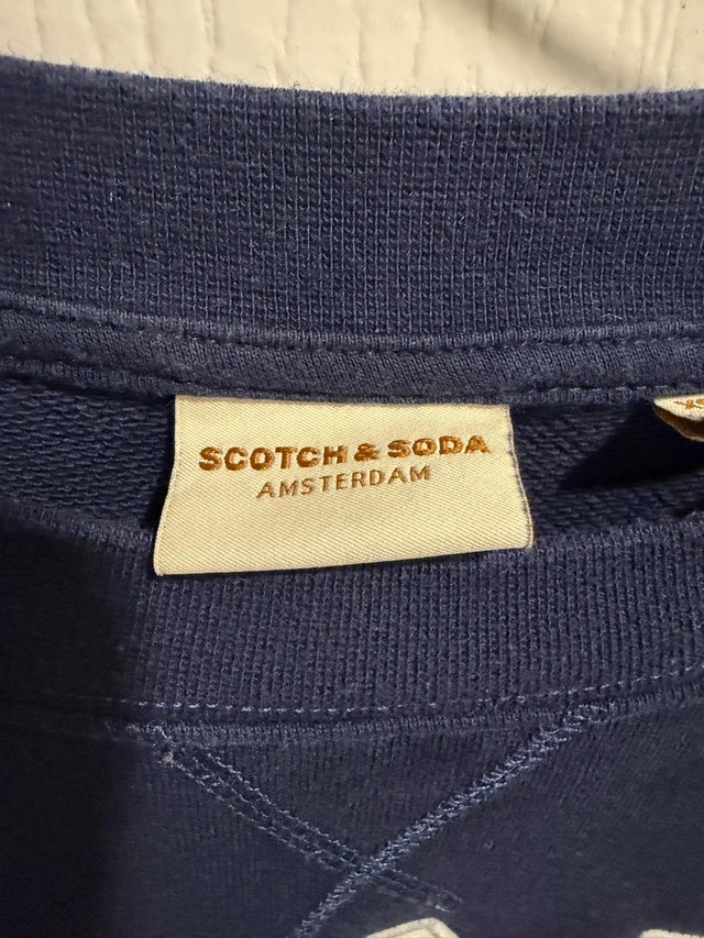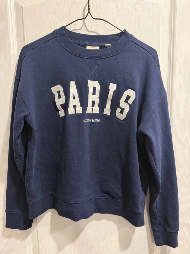 Stay stylish and comfortable in this used Scotch & Soda Paris sweatshirt in size XS. This chic sweatshirt features a classic design with 'Paris' emblazoned across the front. I have enjoyed wearing this sweatshirt; you'll find it's still in great shape and ready for a new home. Details: Brand: Scotch & Soda, Size: XS, Design: 'Paris' logo, Colour: Blue. Condition: Used - Like new. Payment: Cash accepted.