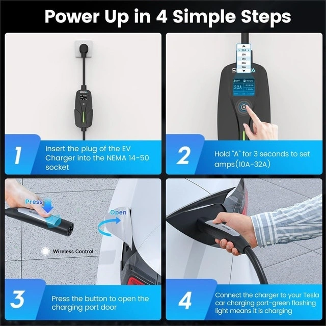 Level 2 EV Charger for Tesla, 32Amp 240V 7.68kW NACS