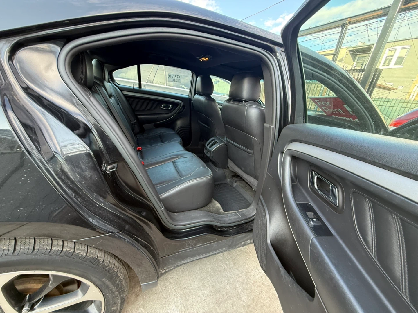 This is a black Ford Taurus sedan. 190,000 original miles in excellent condition only serious buyers please It has a sunroof and a navigation system. Leather seats are included.