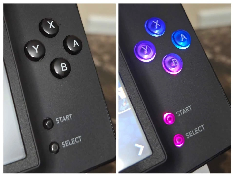 Onyx black was released a launch colour in North America. This is a region free, english languange console from North America. This console has been modified with RGB underglow lights that shine bright colours through the black tinted buttons.