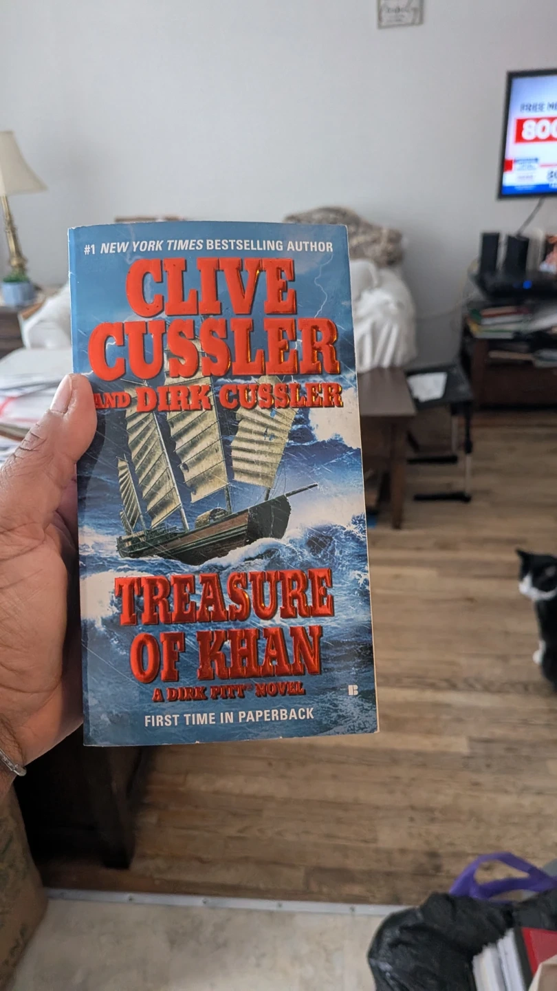 Giving away the paperback version of "Treasure of Khan" by Clive Cussler! It's a Dirk Pitt novel and a great read for adventure lovers.
