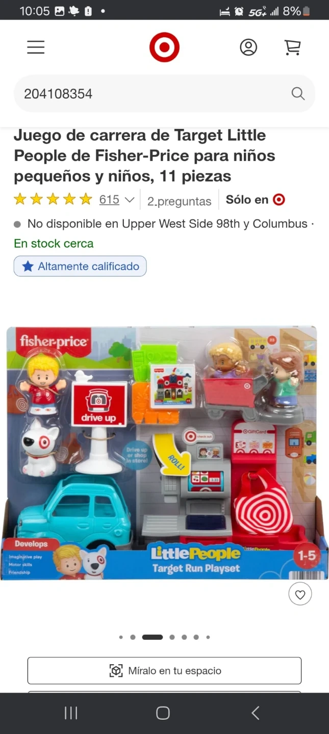 This Little People Target Run Playset by Fisher-Price includes a car, figures, and accessories for imaginative play. It's a 11-piece set designed for kids ages 1-5.