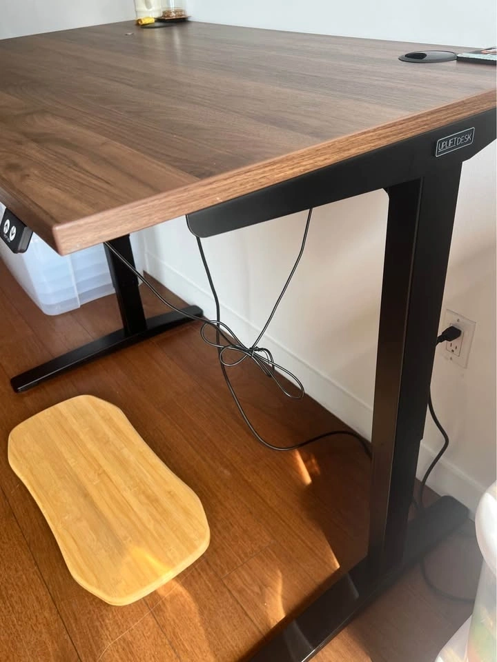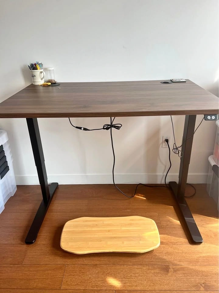 A durable 48x30 inch top and a sturdy frame. With its smooth, programmable electric motor, you can transition between sitting and standing at the touch of a button. Grommet covers rotate open for wire pass-through.
