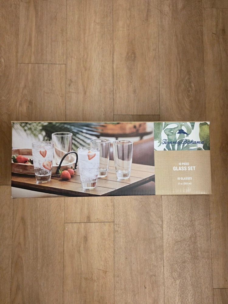 Selling a Tommy Bahama 10-piece glass set! It comes with 10 glasses and the original box.