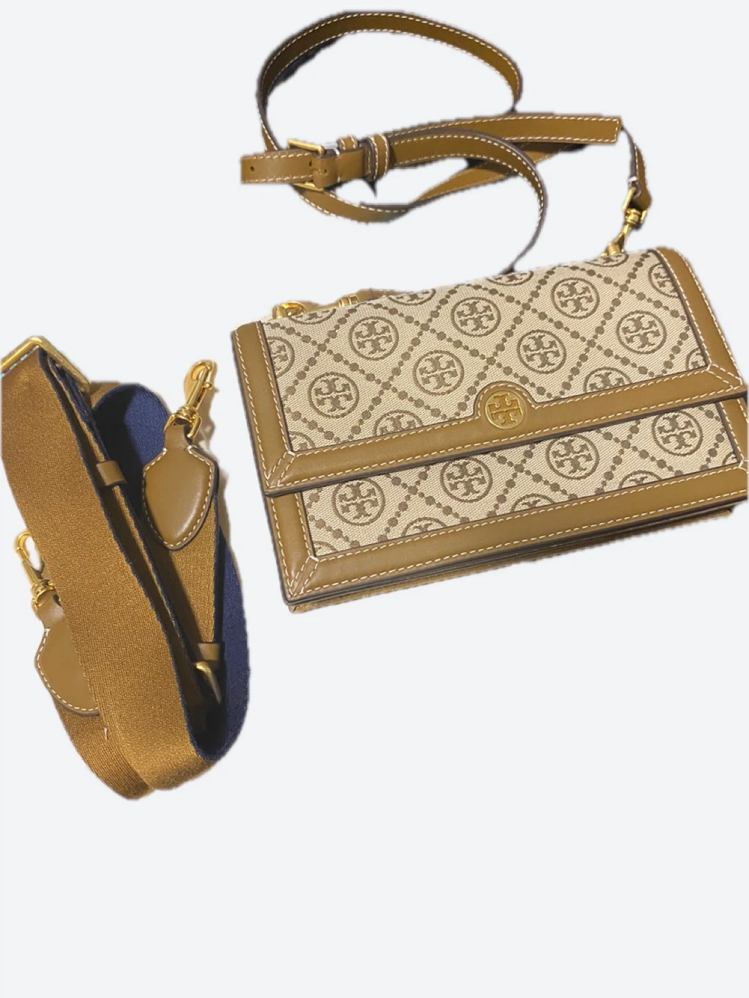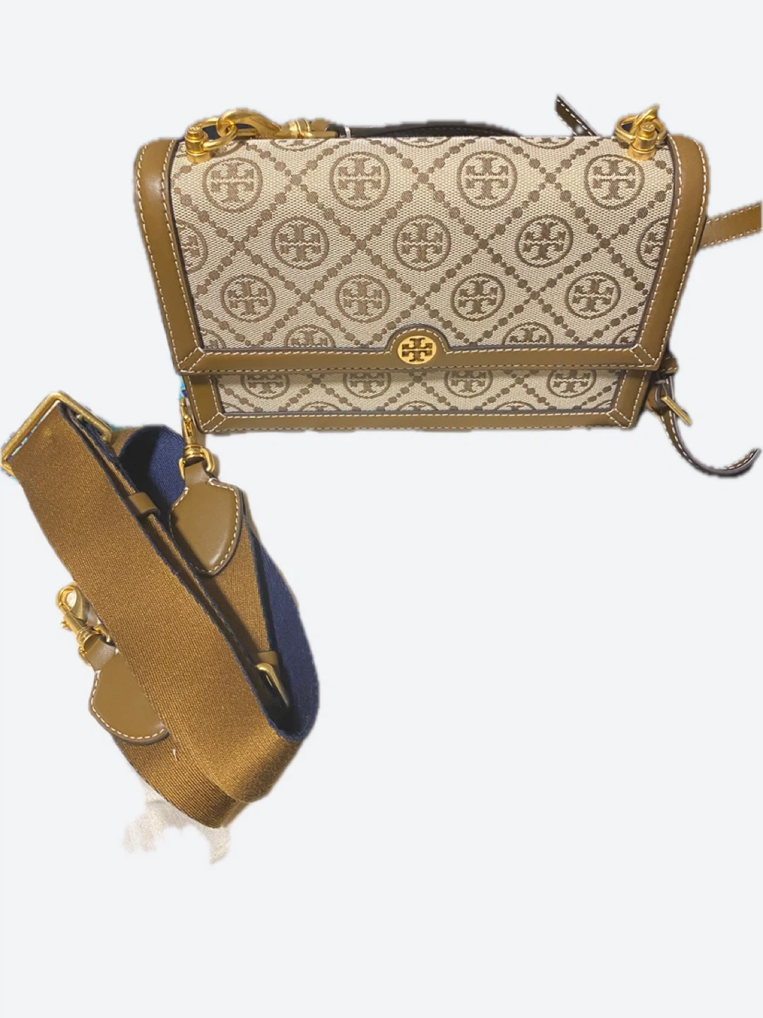 10Selling a stylish Tory Burch handbag. It features a unique pattern and a detachable shoulder strap. Perfect for adding a touch of elegance to any outfit!